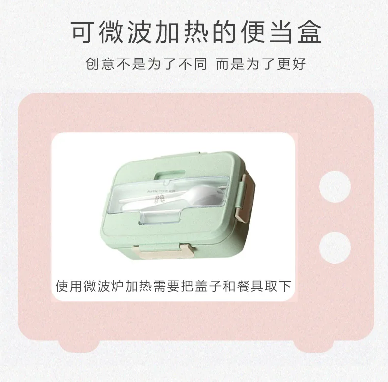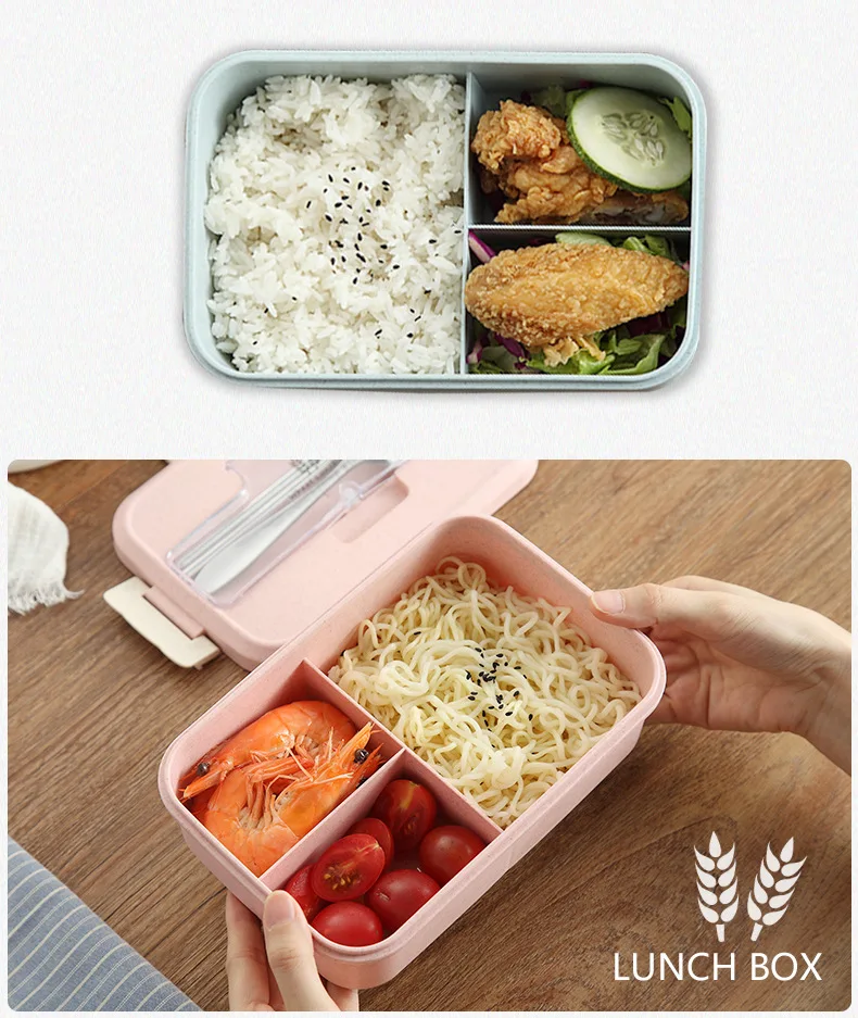 Ланч-бокс для микроволновой печи, столовая посуда из пшеничной соломы с ложкой, палочки для еды, контейнер для хранения еды, Детская школьная и офисная коробка бэнто