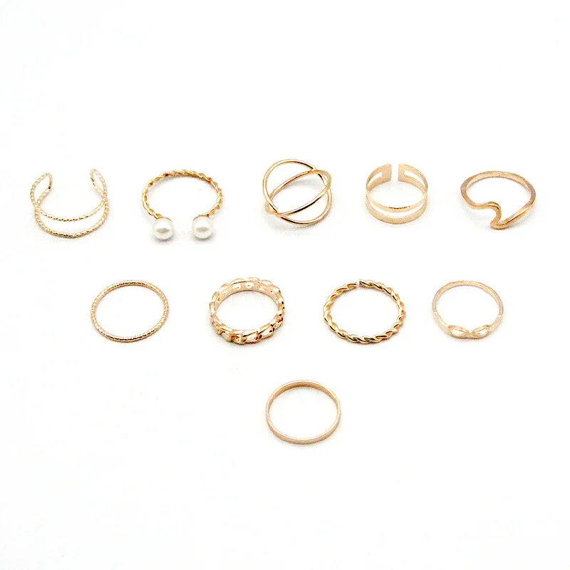 Набор колец из 10 частей с жемчугом и геометрическим рисунком, регулируемые открытые ювелирные изделия, Подарочные Кольца для вечеринок для женщин, набор колец с индивидуальным дизайном