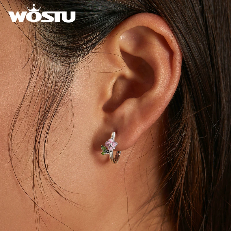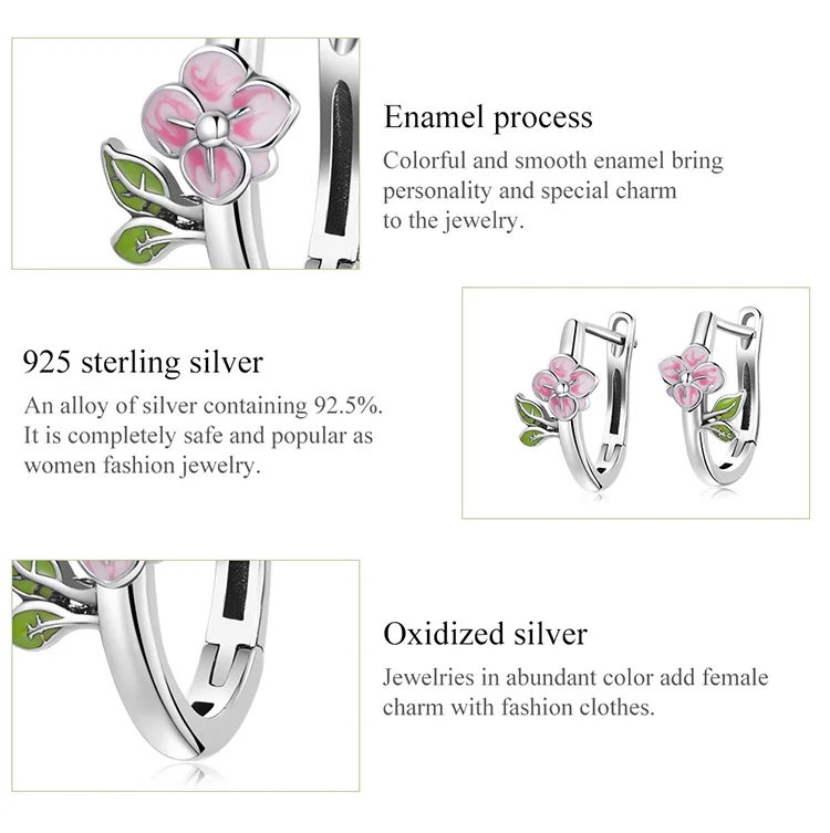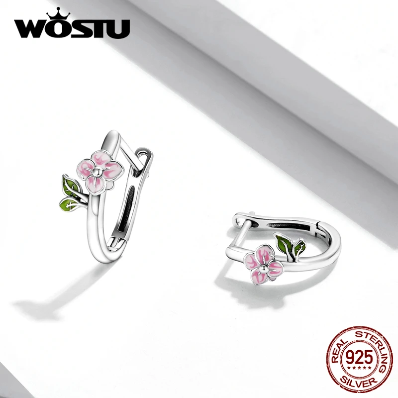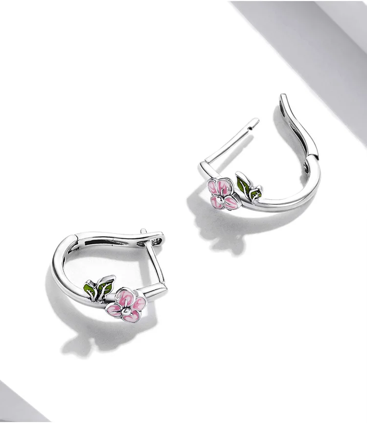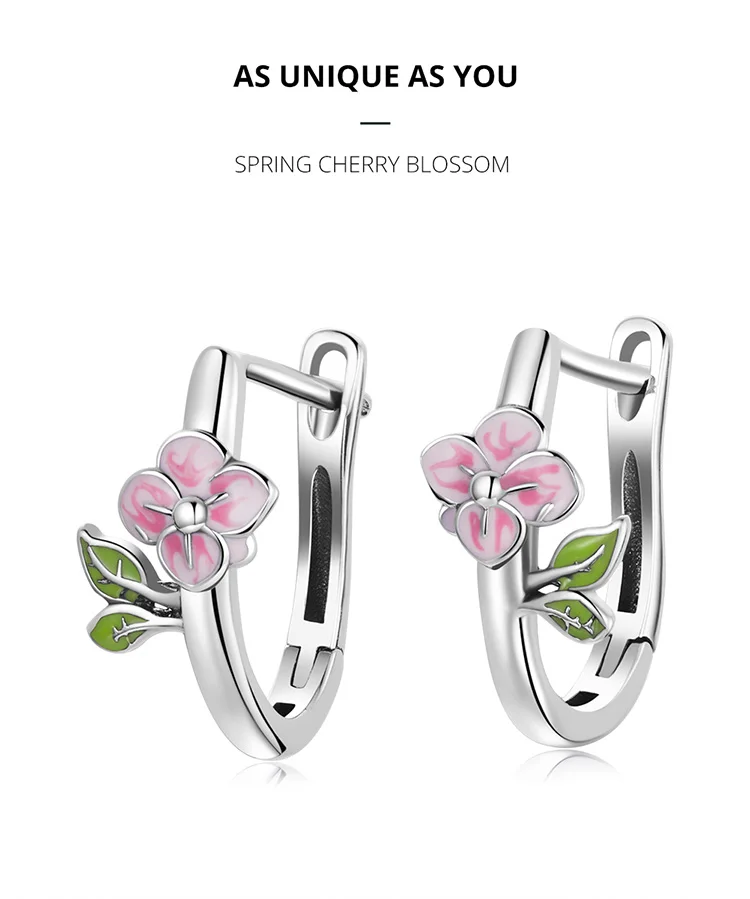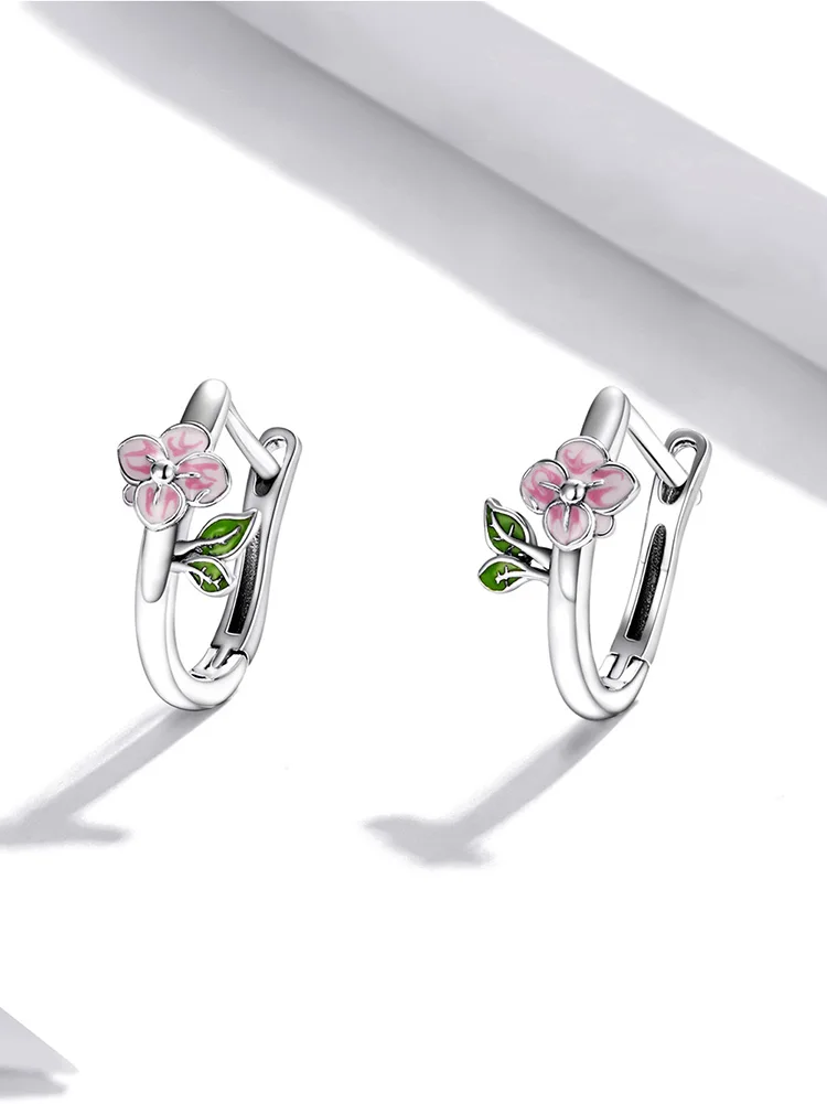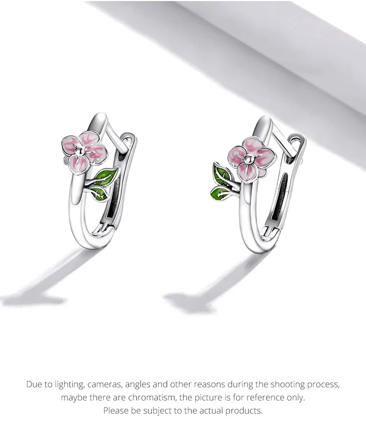 Женские серьги-гвоздики из серебра 925 пробы, с цветком вишни