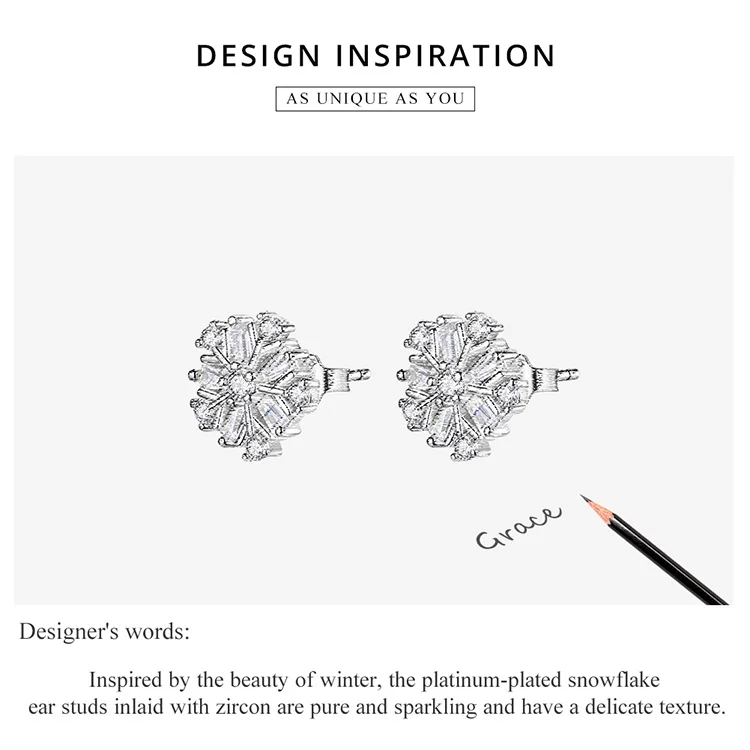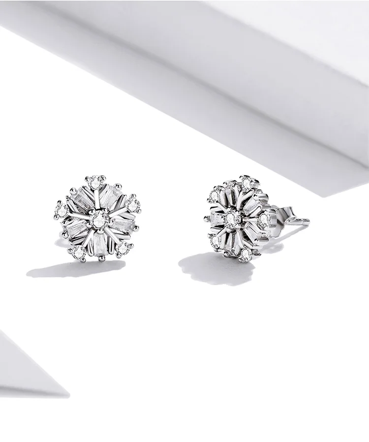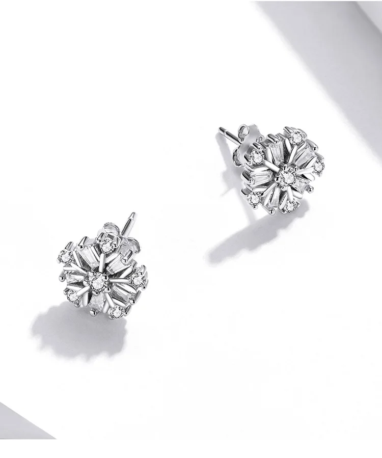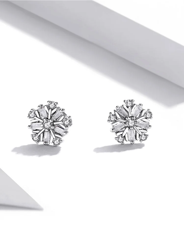 Женские серьги-гвоздики в вечерние снежинок, из серебра 925 пробы