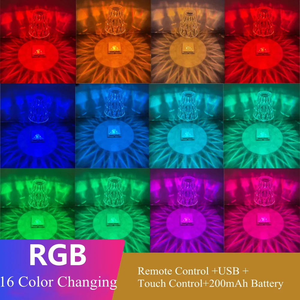 Алмазная настольная лампа, меняющий цвет, 16 цветов, с дистанционным управлением через USB, ночники для спальни, гостиной, Рождественский Декор, атмосферные настольные лампы, подарок