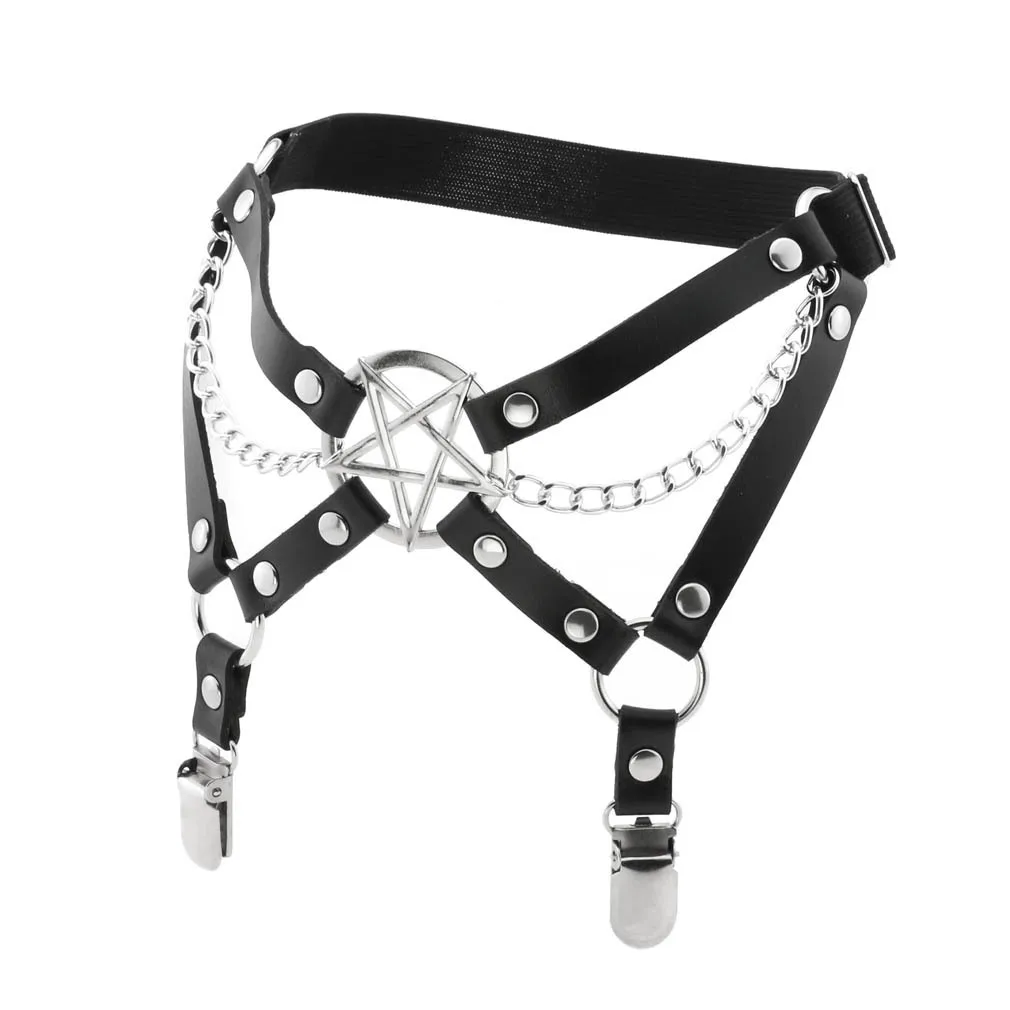 Пояс для чулок кожаный с пятиконечной звездой, в готическом стиле