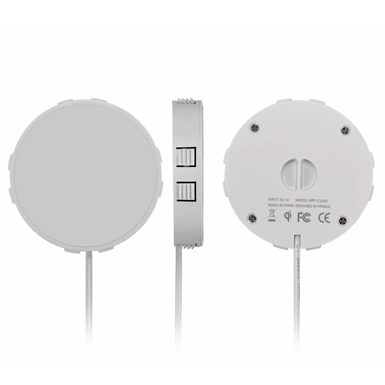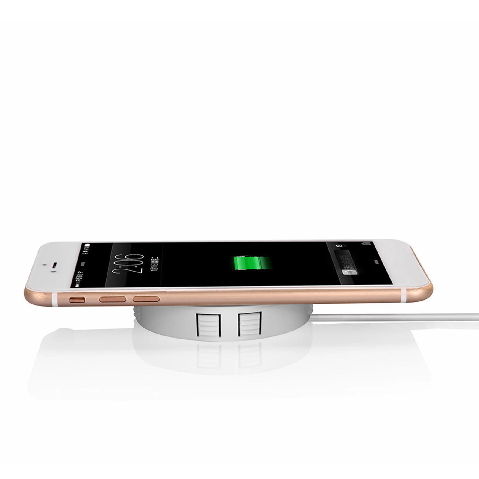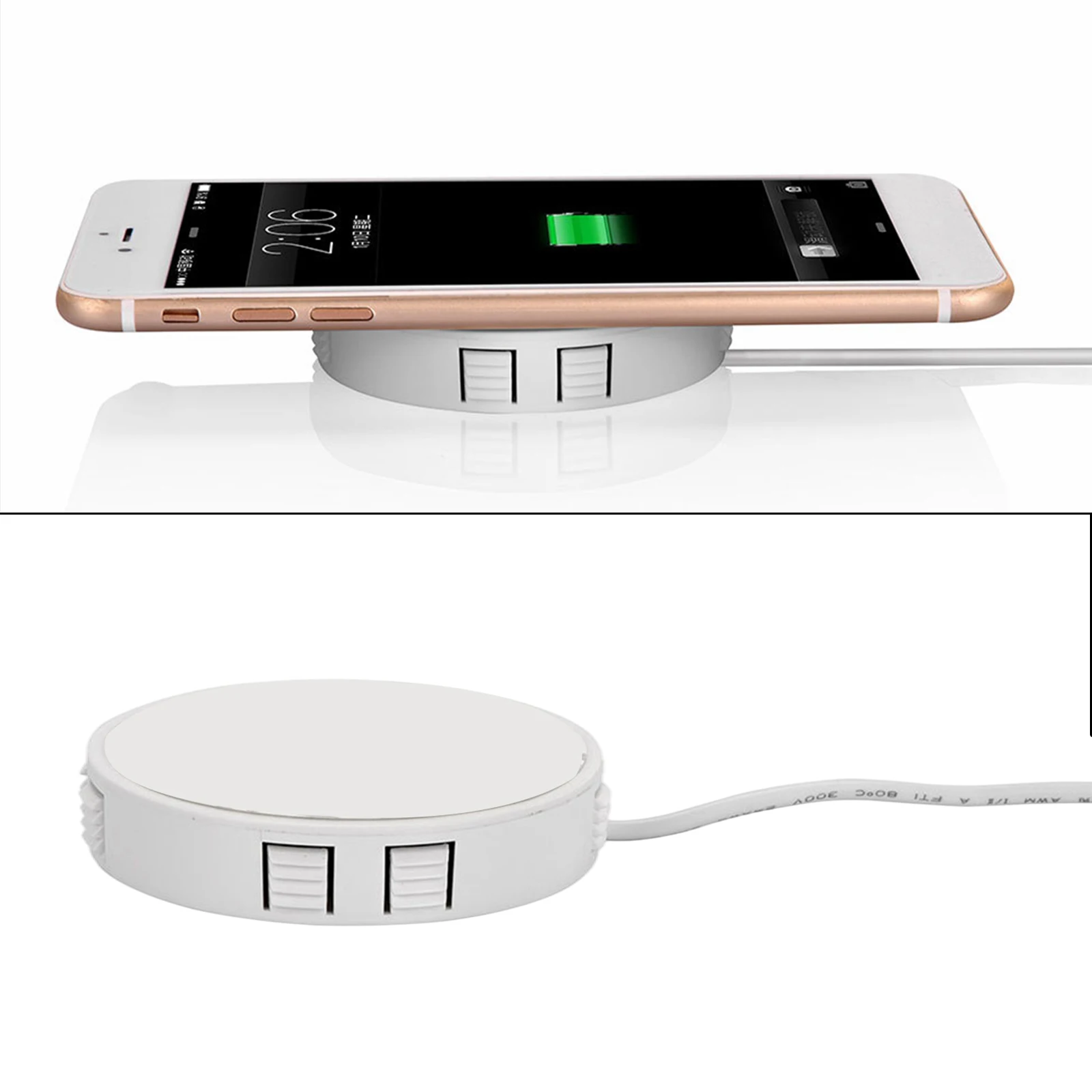 Скрытое Беспроводное зарядное устройство для телефона с пыленепроницаемым и водонепроницаемым внешним видом из АБС-пластика. Устройства с поддержкой Qi: для всех телефонов, поддерживающих беспроводную зарядку QI. Может быть установлен под столом, просто нужно просверлить столешницу диаметром 72 мм под столом, а затем установить зарядное устройство в отверстие. С клейкой конструкцией на задней панели зарядного устройства, подходит для деревянных, стеклянных, мраморных и пластиковых столов. Применение: особенно для ресторана, бара, кафе, аэропорта, железнодорожных станций, офисного стола, обеденного стола, журнального столика, прикроватного столика и т. Д.