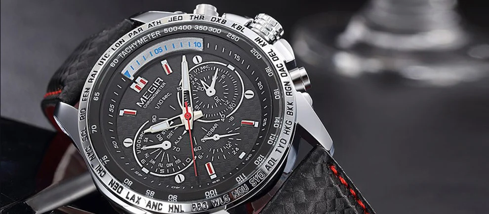 Особенности:-100% оригинальные часы MEGIR;-100% новый с биркой и гарантией качества;-Водонепроницаемость 3 АТМ (вы можете использовать его во время дождя и мытья рук, не поддерживает горячую воду и плавание);-Креативный дизайн MEGIR и высококачественные материалы.Характеристики:-Товар: Мужские кварцевые часы-Модель: MEGIR 1010-Тип часов: кварцевые часы/мужские часы/военные часы-Функция: водонепроницаемый-Материал корпуса: сплав-Материал ремешка: кожаный ремешокПараметры:-Диаметр корпуса: 45 мм-Толщина корпуса: 12 мм-Длина ремешка (Максимально возможная): 220 мм-Ширина ремешка: 22 ммПосылка-1 часы Megir-1 x Руководство пользователя с гарантийным талоном-1 х Салфетка для чистки часов