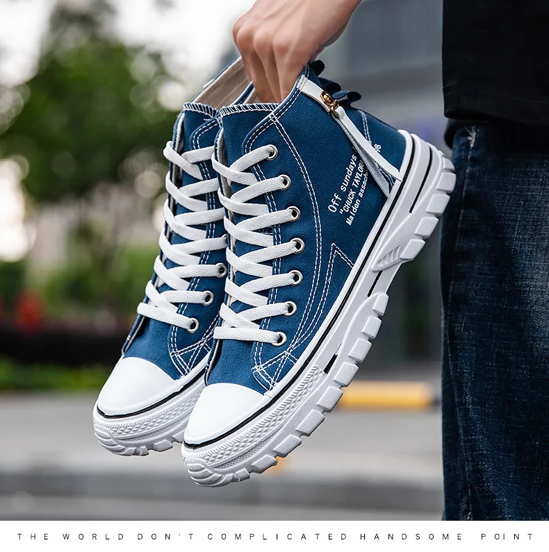 Кроссовки мужские высокие, повседневные теннисные туфли, дышащие холщовые, синие, черные, для тренировок, скейтборда, бесовая обувь