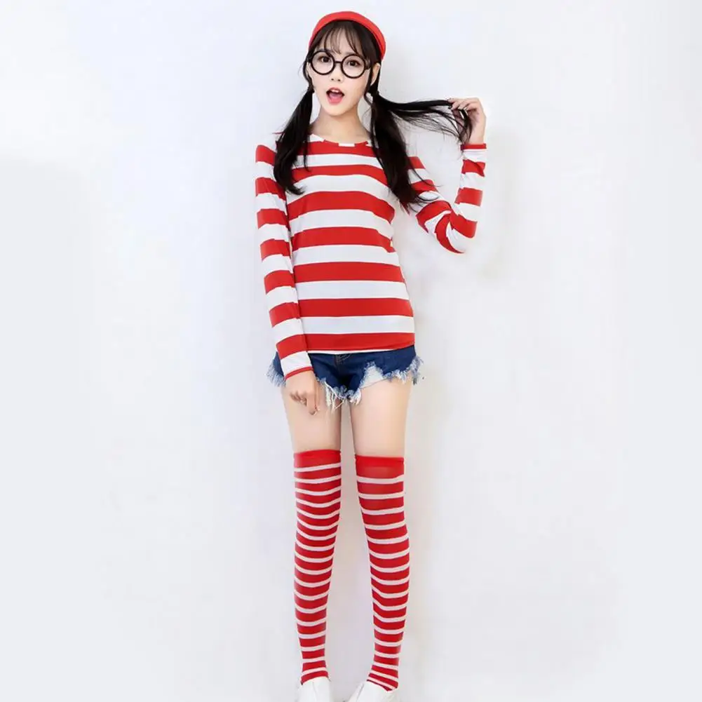 Футболка с круглым вырезом и длинным рукавом, набор из 34 предметов в рождественском стиле, шапка с принтом в красную полоску, топ и очки, женский комплект одежды для дома, наряд ЗКИ