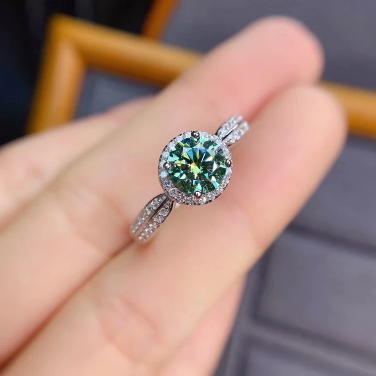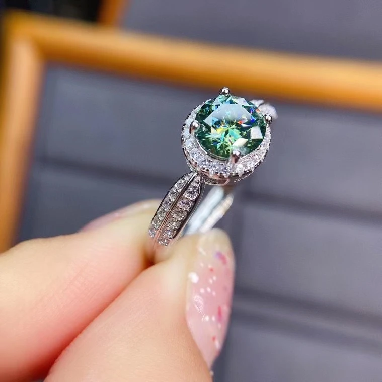 Geoki 925 стерлингового серебра прошел алмаз Тесты 0,5 КТ зеленый с...