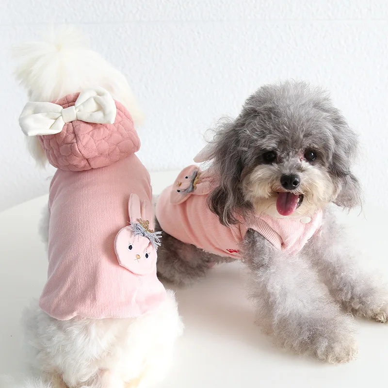 Свитер для домашних животных, теплая хлопковая одежда для собак, осенне-зимняя одежда для собаки, простой розовый свитер с капюшоном для собаки, одежда для домашних животных на две лапы