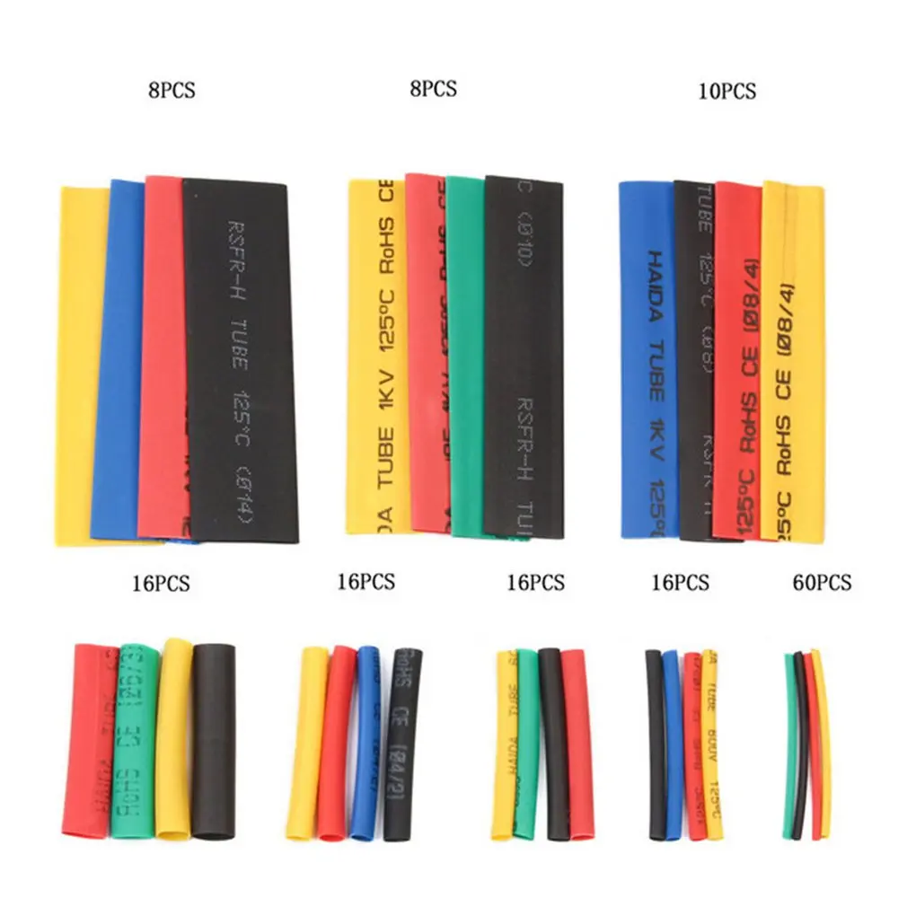 Комплект термоусадочных трубок 2:1, 164 шт., термоусадочные полиолефиновые изоляционные трубки для проводов, 8 размеров, устойчивые к высоким температурам