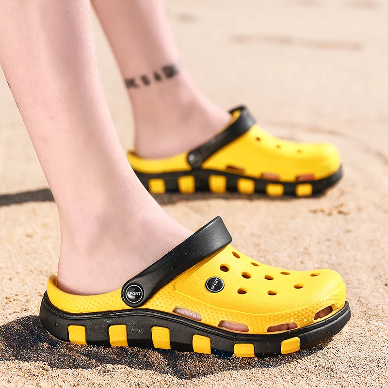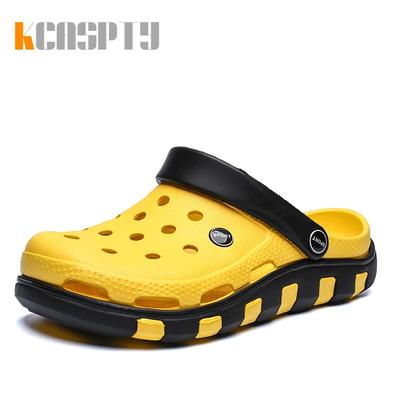 Новые мужские сандалии KCASPTY, женские летние Нескользящие новые туфли с отверстиями, женские клоги, подходящие для пляжа, мужские тапочки на плоской подошве