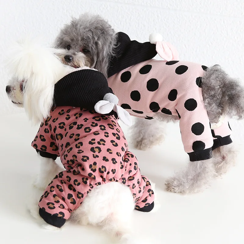 Осенне-зимняя хлопковая одежда для собак, четвероногие, серые, розо...