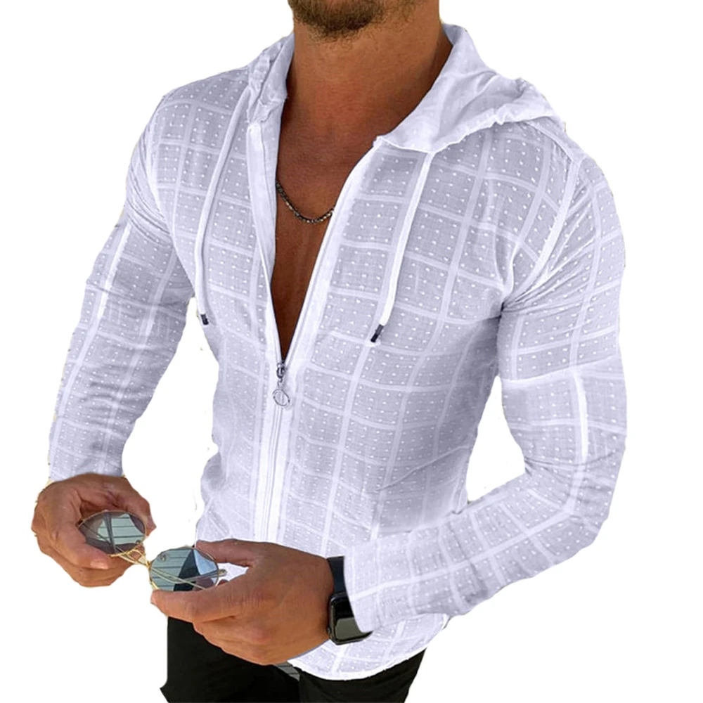 Мужская рубашка с капюшоном, кардиган на молнии, Повседневная Форма...