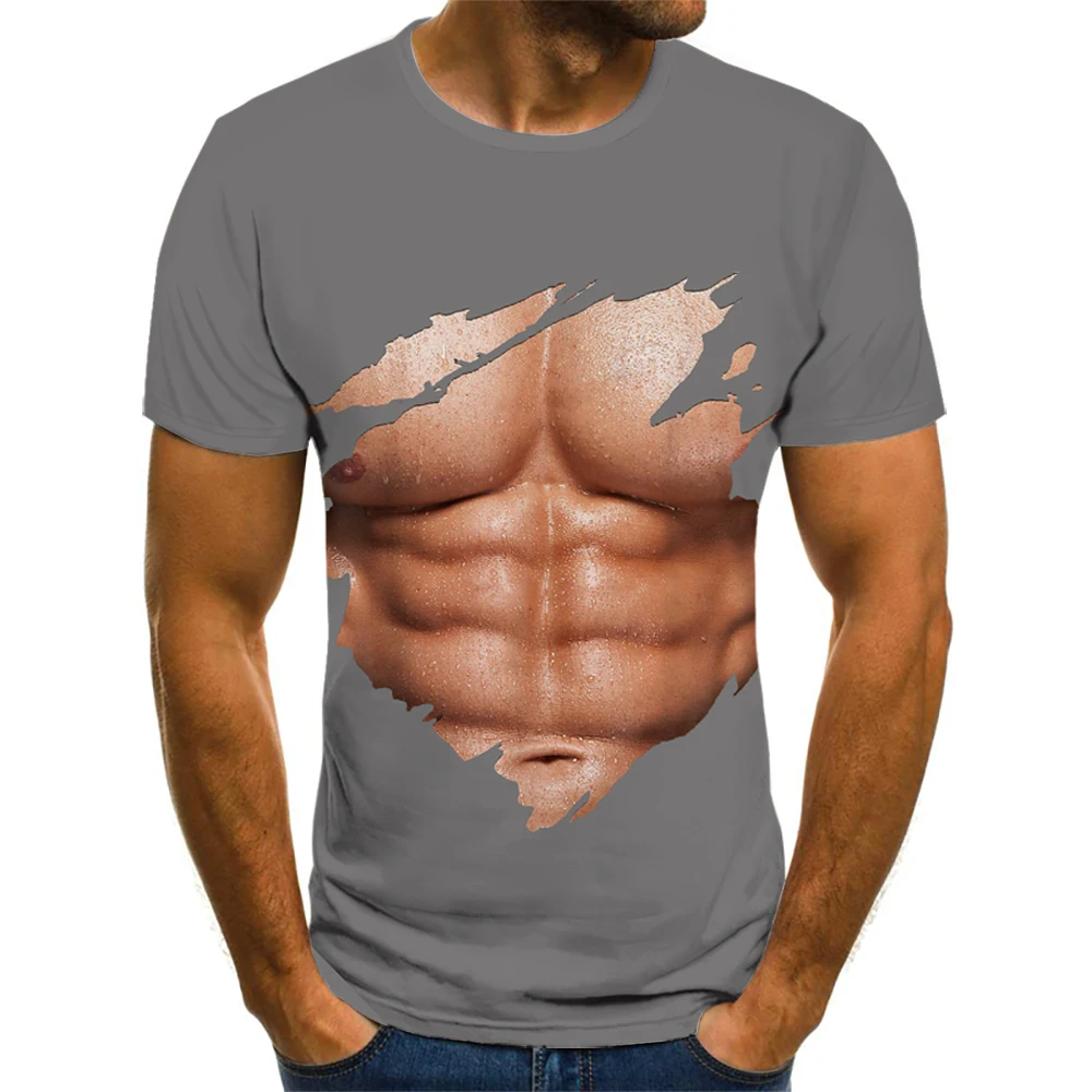 Футболка мужская с коротким рукавом, забавный креативный Повседневный Топ с принтом сильных мышц и татуировок, 3d-цифровая печать, лето