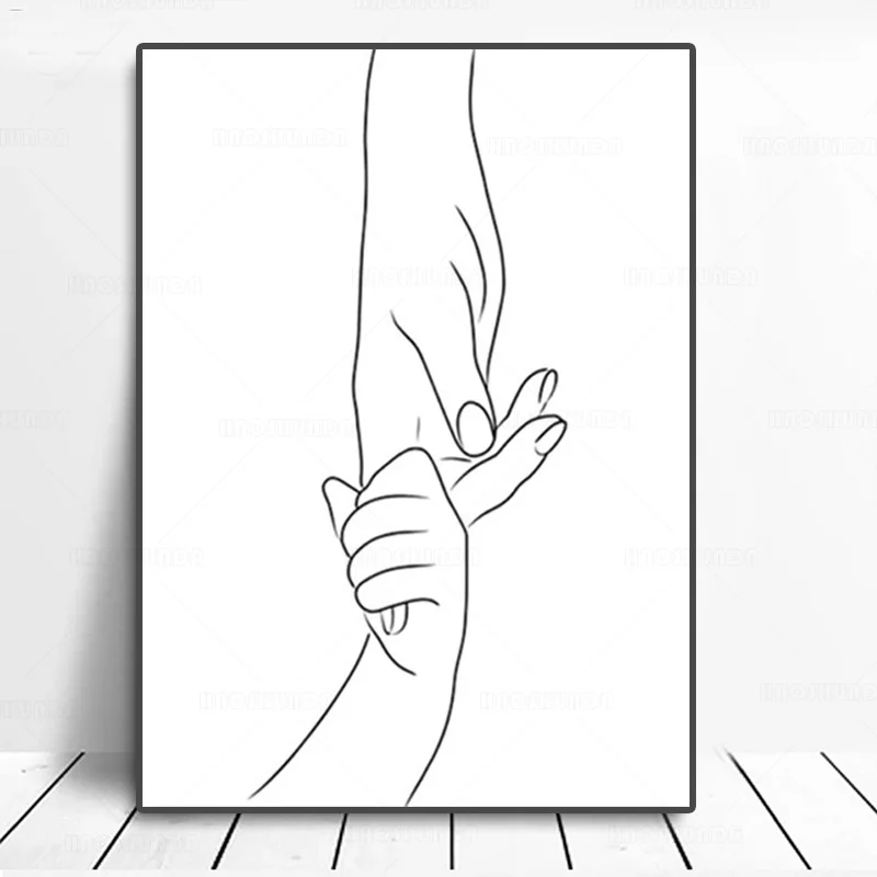 Рисование по линии рук, художественный принт, Настенный декор для детской комнаты, минималистичные руки мамы, малыша, настенная Картина на холсте, Постер в скандинавском стиле для детской комнаты