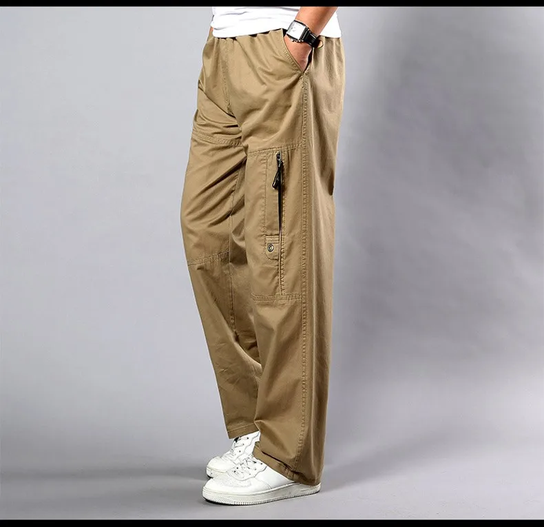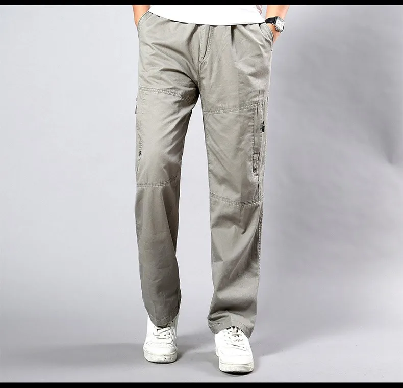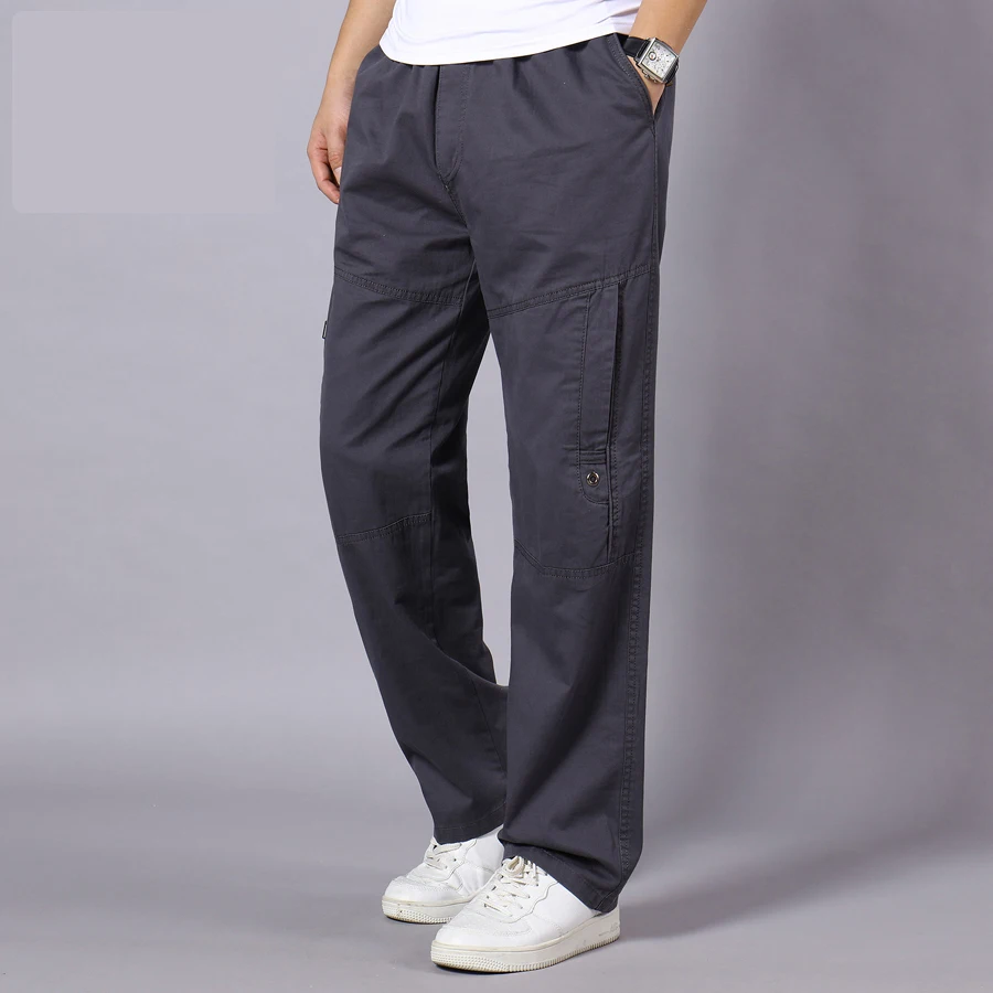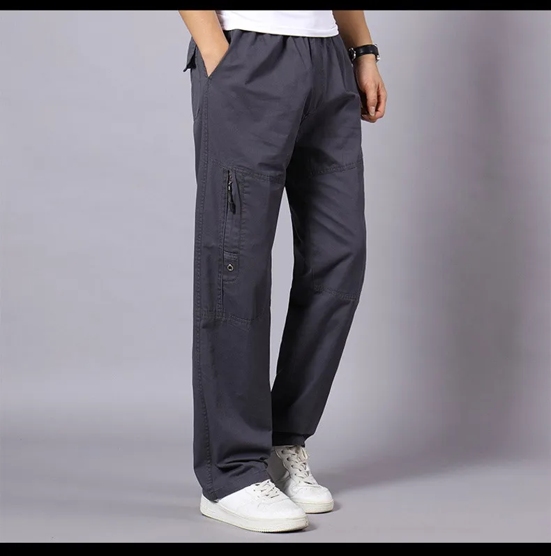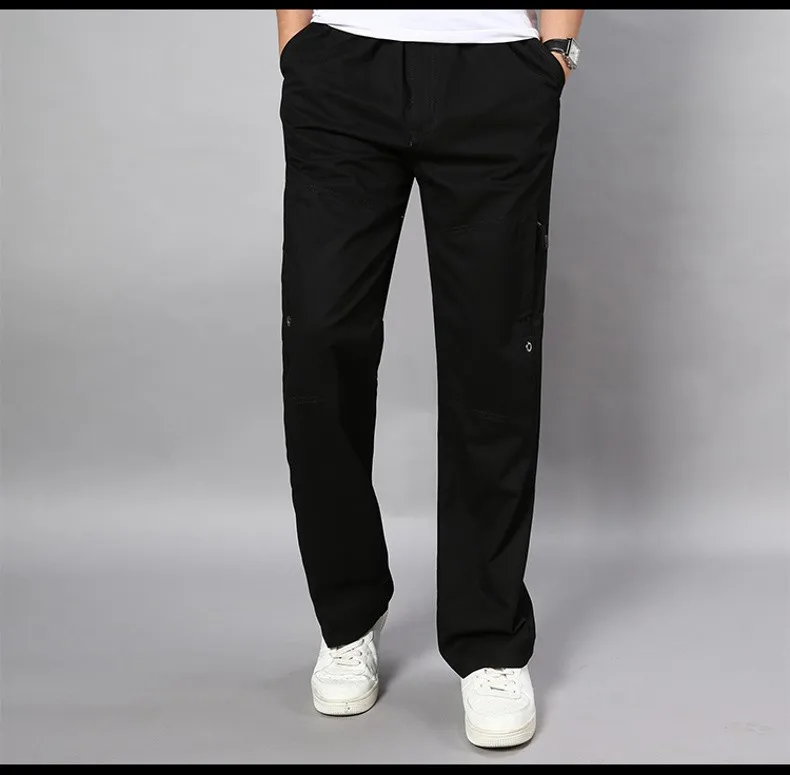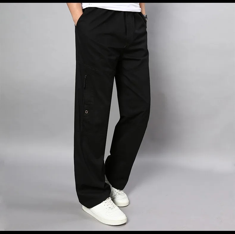 Мужские повседневные брюки, осенняя модель, мужские прямые брюки-карго с боковым карманом, размеры 5Xl, тактические черные хлопковые брюки с широкими штанинами
