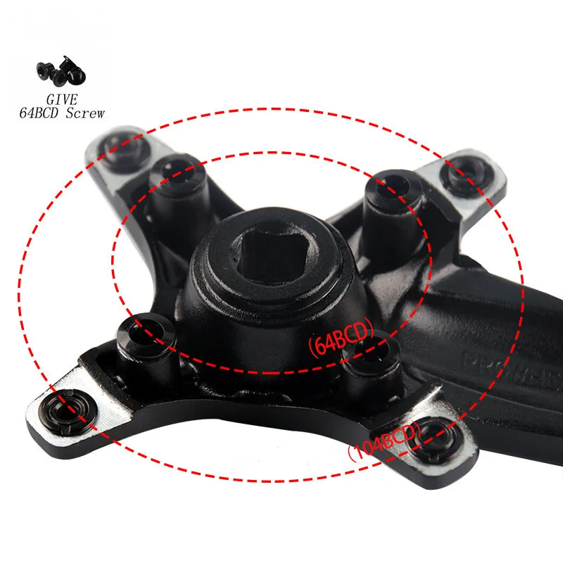Prowheel велосипеда Запчасти кривошипно 64BCD/104 BCD MTB велосипед диаметра окружности болтов (170 мм/175 мм квадратное отверстие Crank 38/40/42/44/46/48/50/52 звездочки
