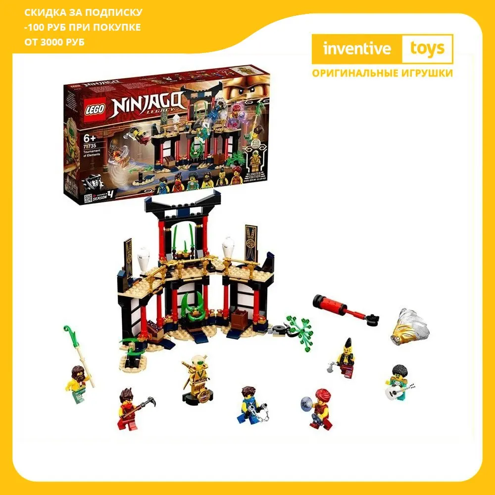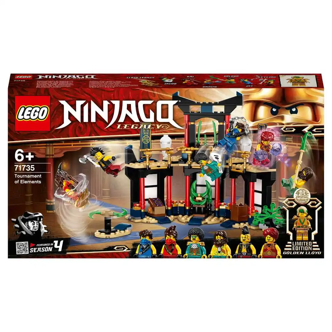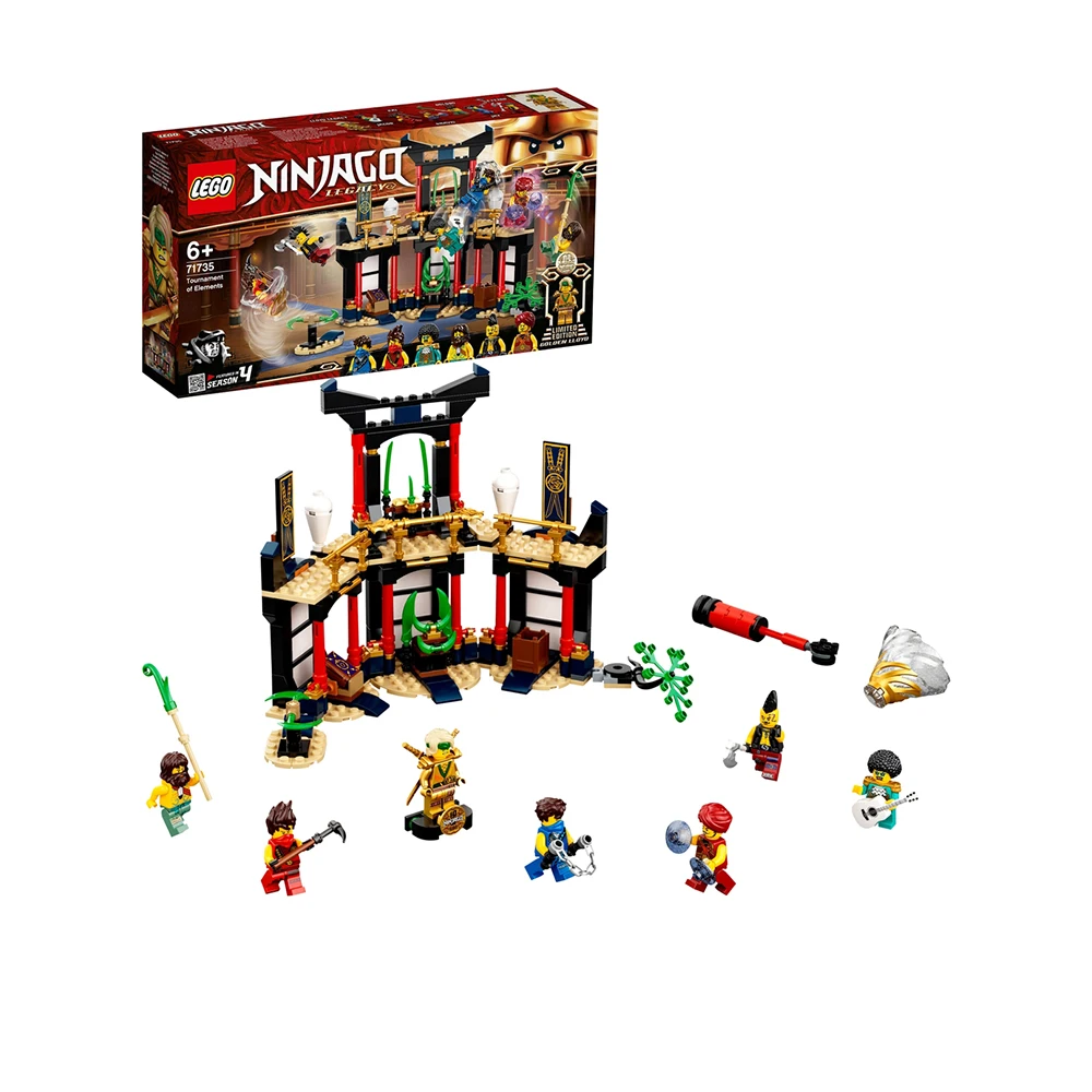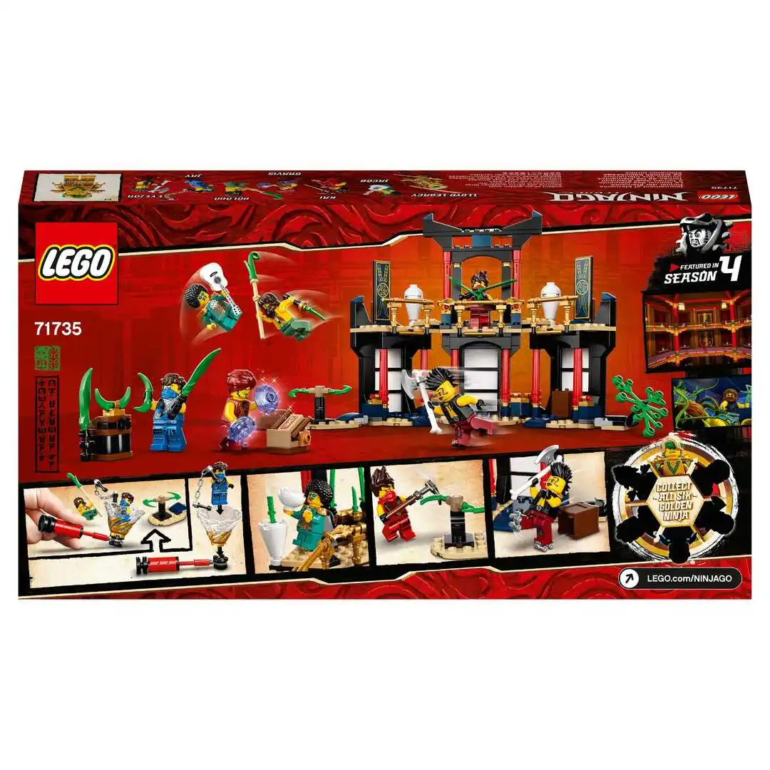 Набор «Турнир стихий» LEGO® NINJAGO® (71735) содержит детализированный храм, где дети смогут оттачивать свои навыки ниндзя и разыгрывать потрясающие битвы.