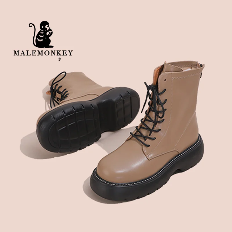 Женские ботинки на платформе, мотоциклетные ботинки на массивном ка...