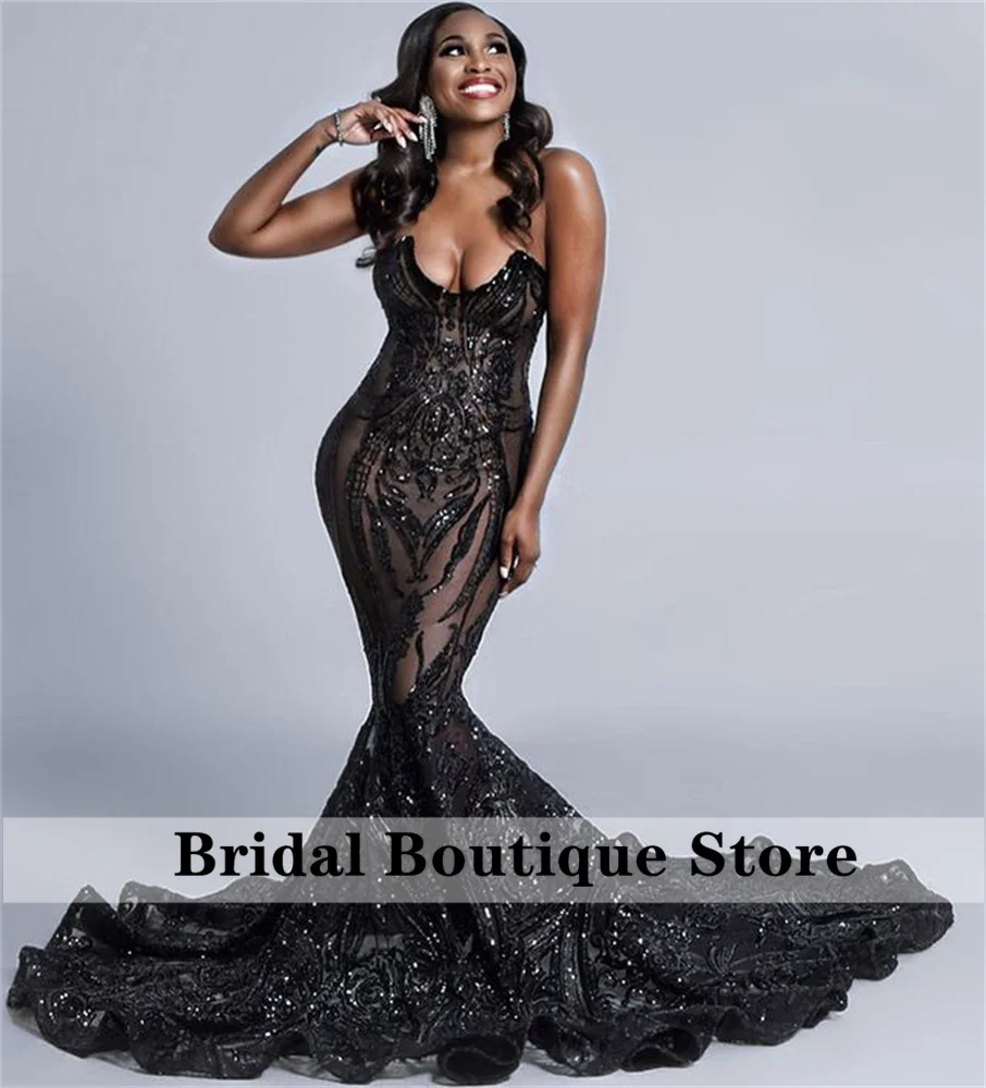 Сексуальные черные платья с блестками для выпускного вечера 2022 для черных девушек Aso Ebi вечернее платье со шлейфом вечерние платья платье