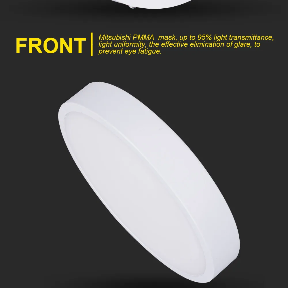 Ультра Поверхностная панель света с черным тепловым радиаторомМатериал:Литье под давлением алюминия, PS LGP, круглой или квадратной формы.Источник света:4014SMD 0,2 W RA>70 24-26LMИсточник питания:Ультра тонкая изоляция PF> 0,5,Напряжение: 85-265 в