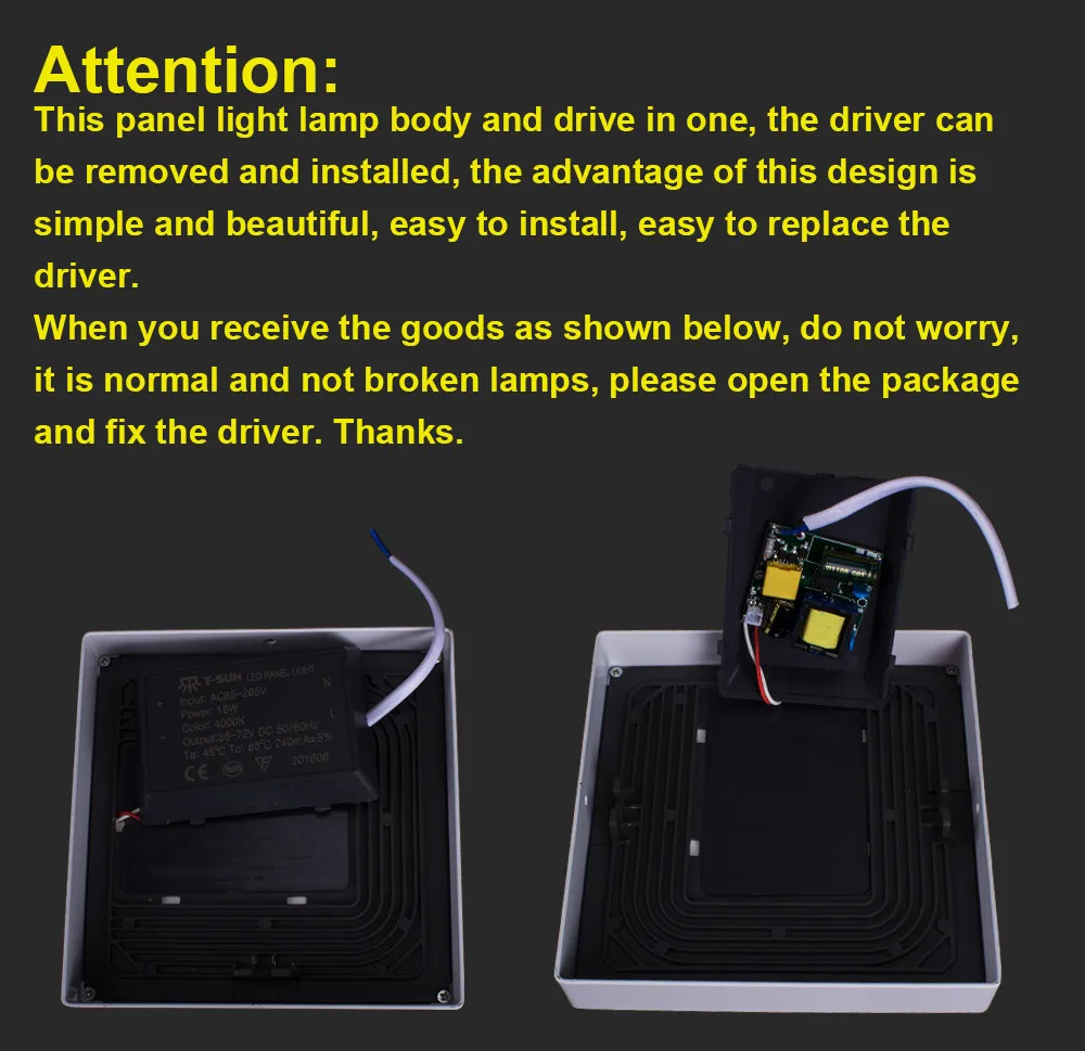Этот корпус лампы и драйвер панели в одном, драйвер может быть удален и установлен, преимущество этой конструкции просто и красиво, легко установить, легко заменить драйвер.