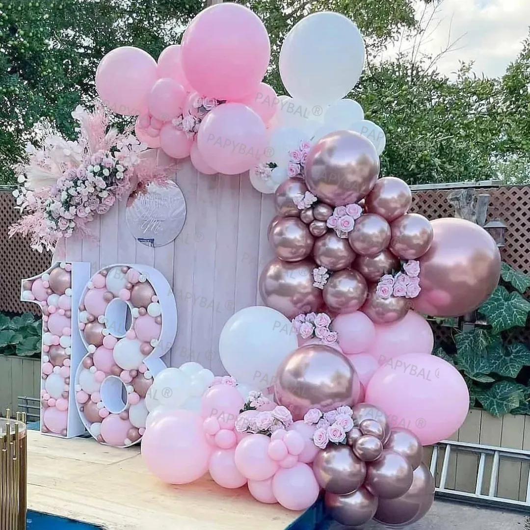 Шары воздушные золотистые, розовые, пурпурные, 133, комплект гирлян...
