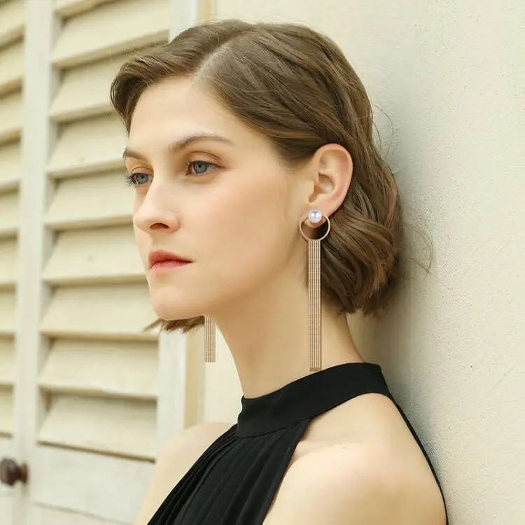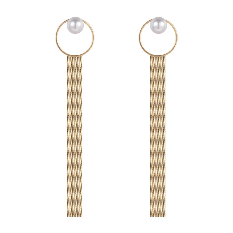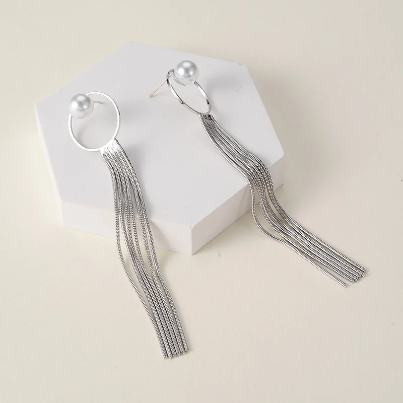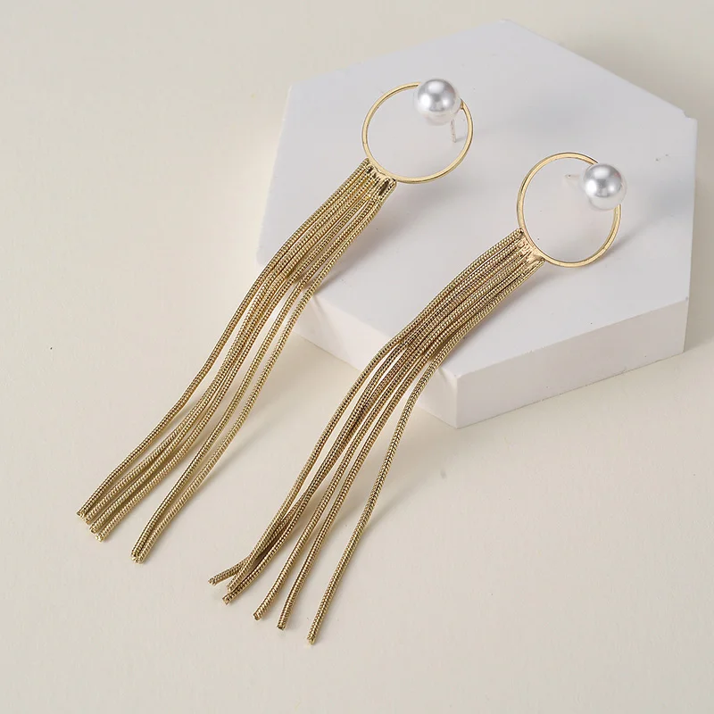 Серьги-подвески Женские Висячие в стиле ретро с длинными кисточками и искусственным жемчугом
