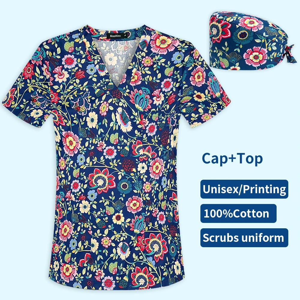 Медицинская униформа из 100% хлопка с цветочным принтом, униформа м...