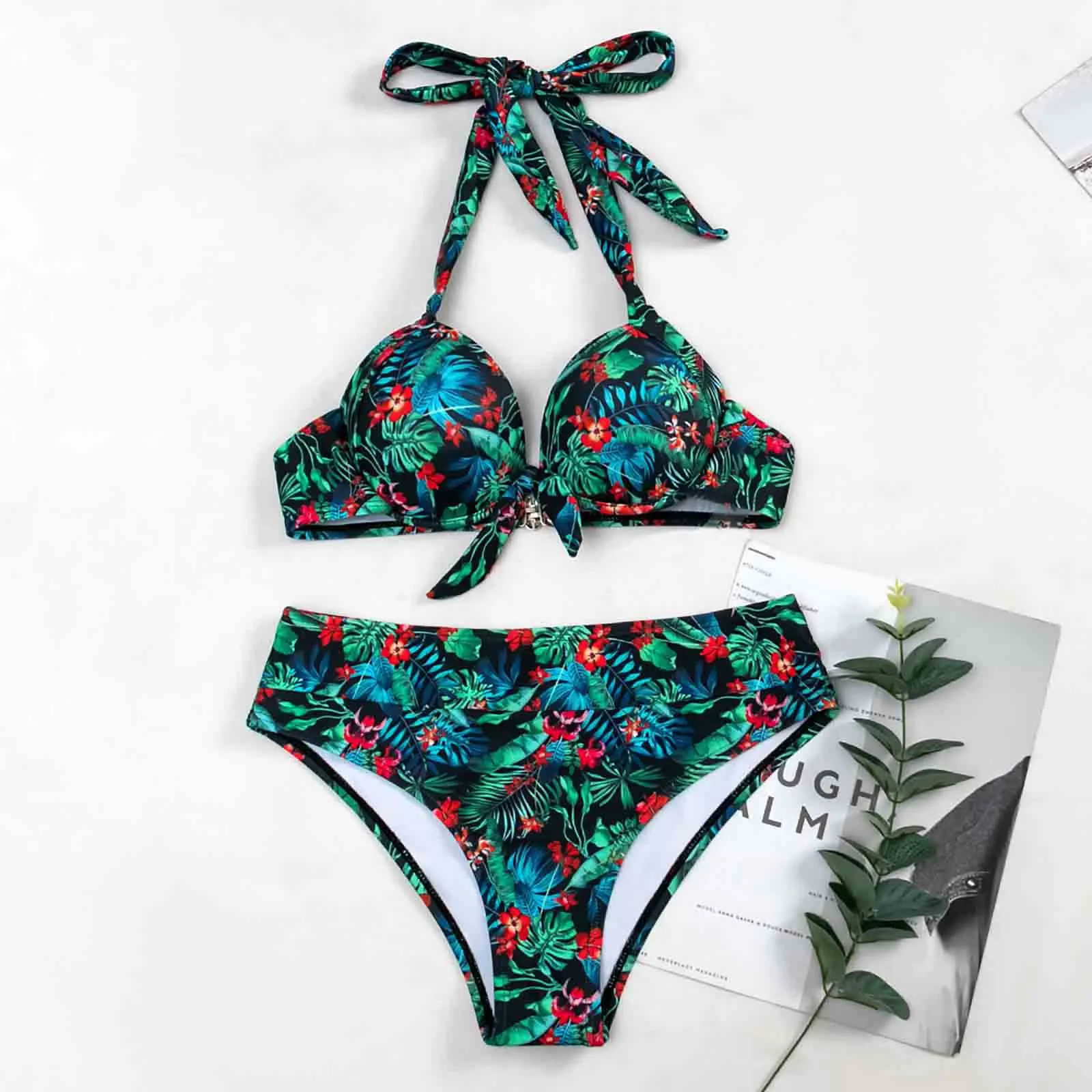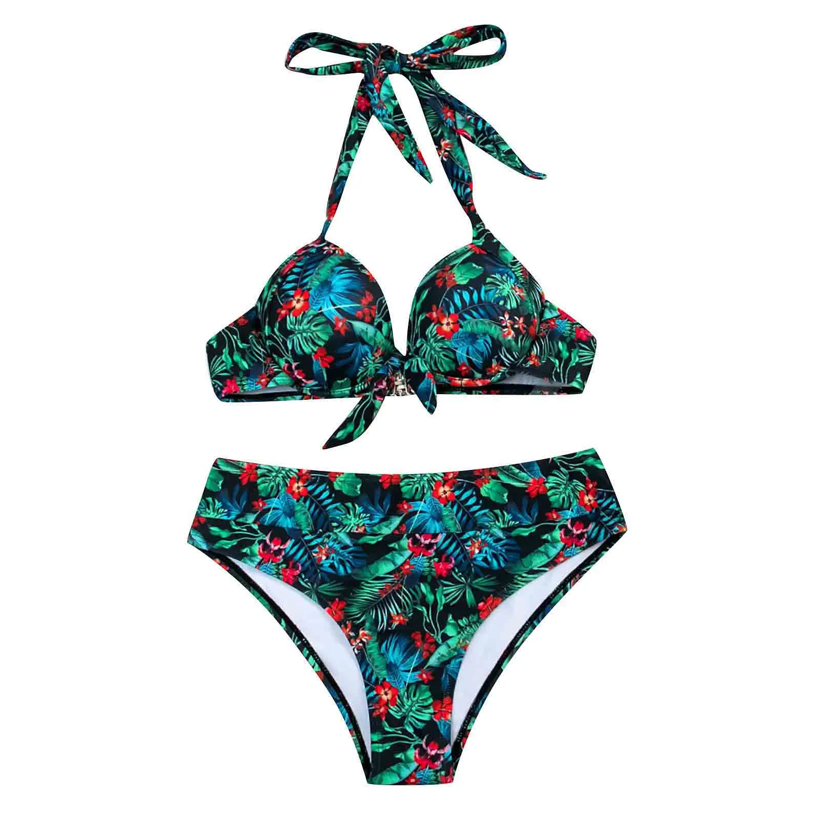 Новинка 2021, женское модное бикини из двух частей, бандажная кофта с принтом, купальник, Летний Пляжный купальный костюм с эффектом пуш-ап, женские комплекты купальников