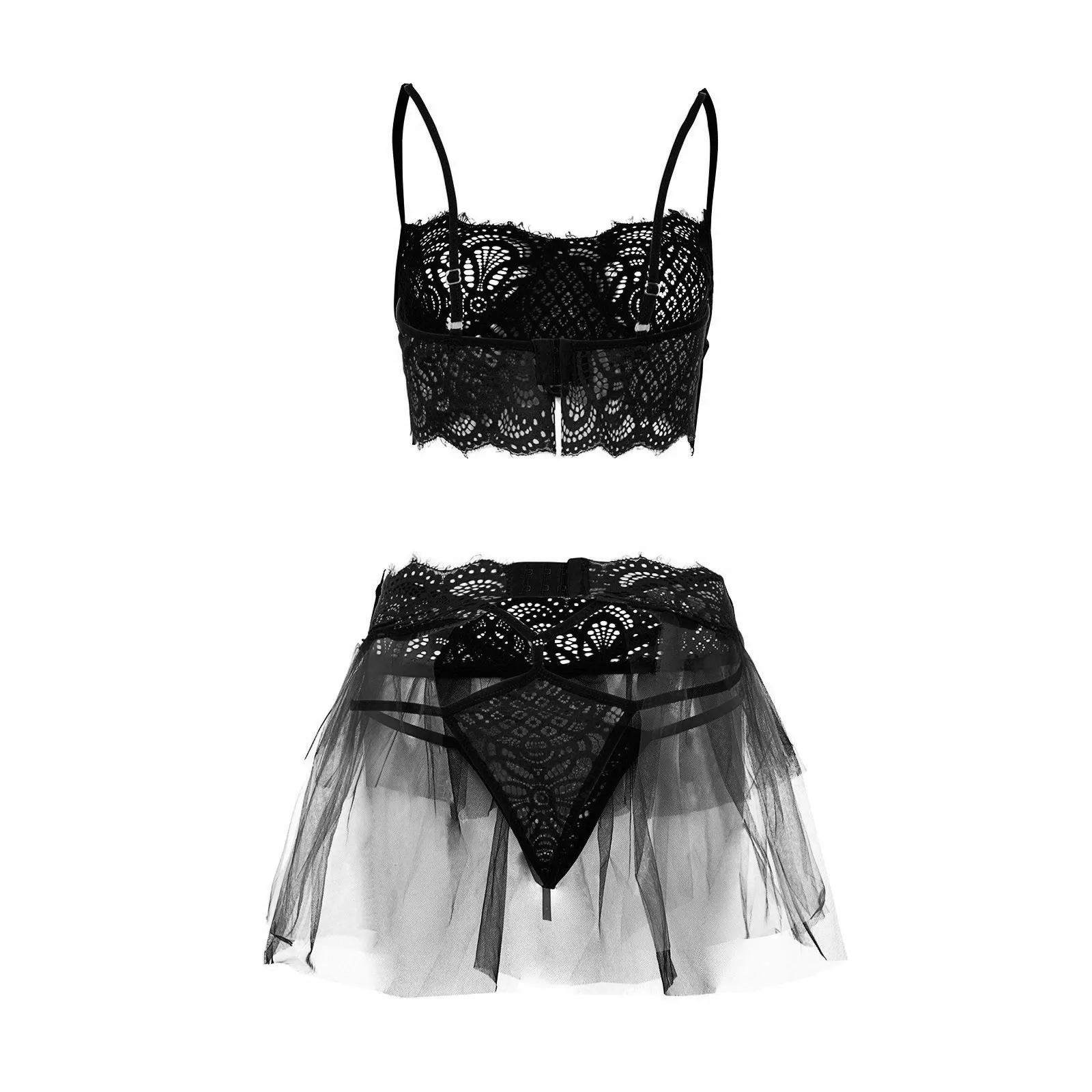 Сексуальное Кружевное женское нижнее белье, женское нижнее белье, бесшовный бюстгальтер, стринги, Тюлевая мини-юбка, нижнее белье, женские экзотические комплекты