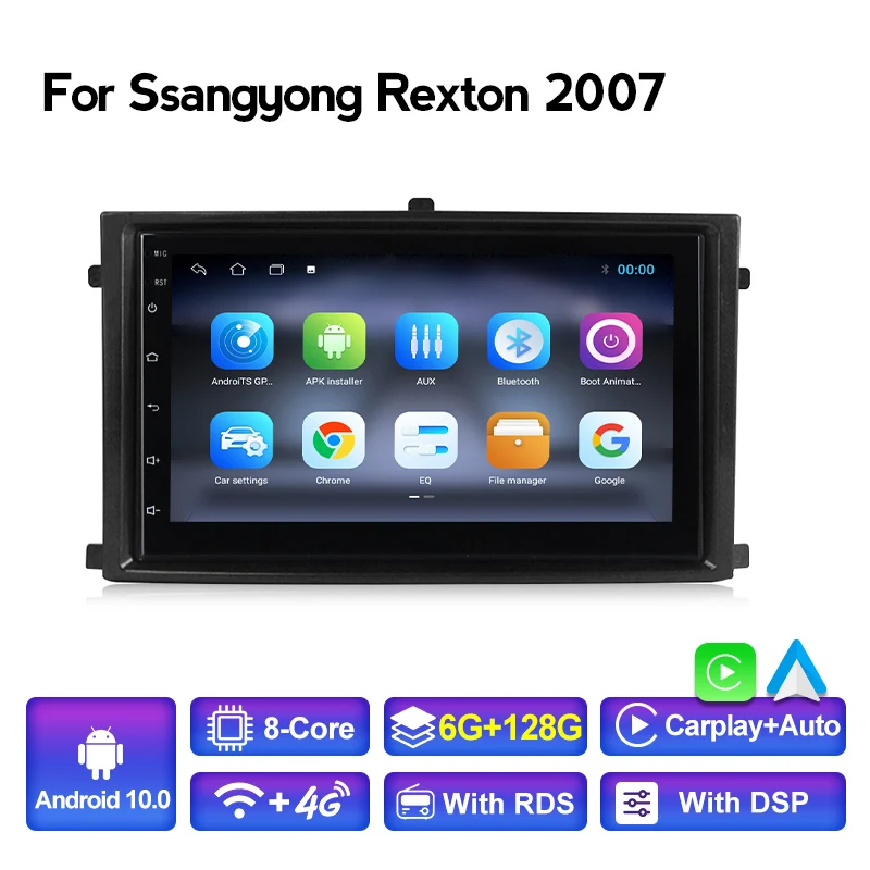 Автомобильный мультимедийный плеер, 8 ядер, 6 + 128, 4G LTE, Android10, для Ssangyong Rexton 2007 +, BT, Wi-Fi, GPS, головное устройство CARPLAY, автомагнитола, без DVD