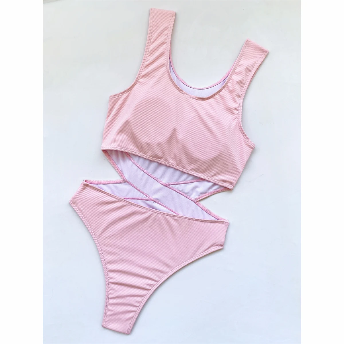 Женский слитный купальник в рубчик 2021, женский купальник, однотон...