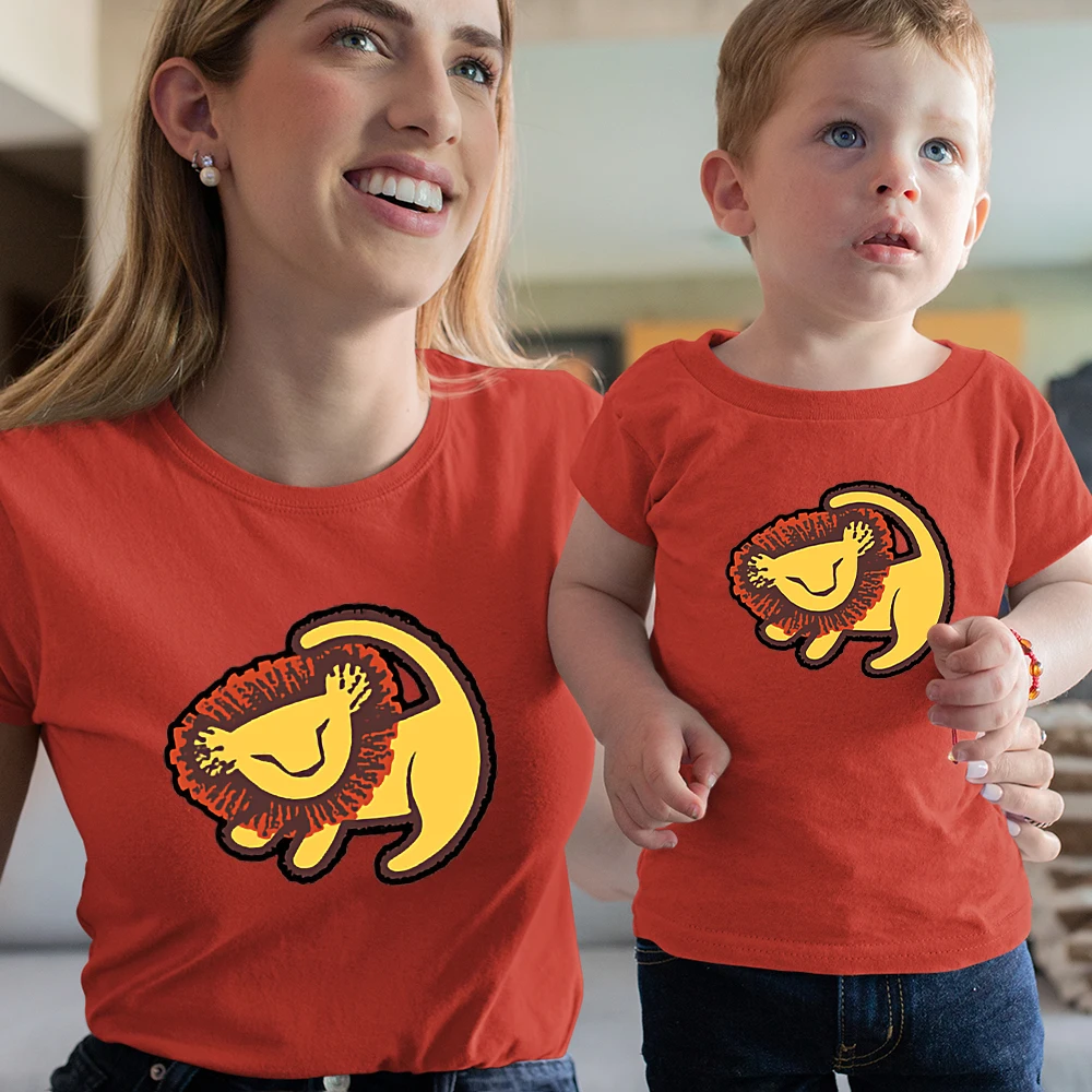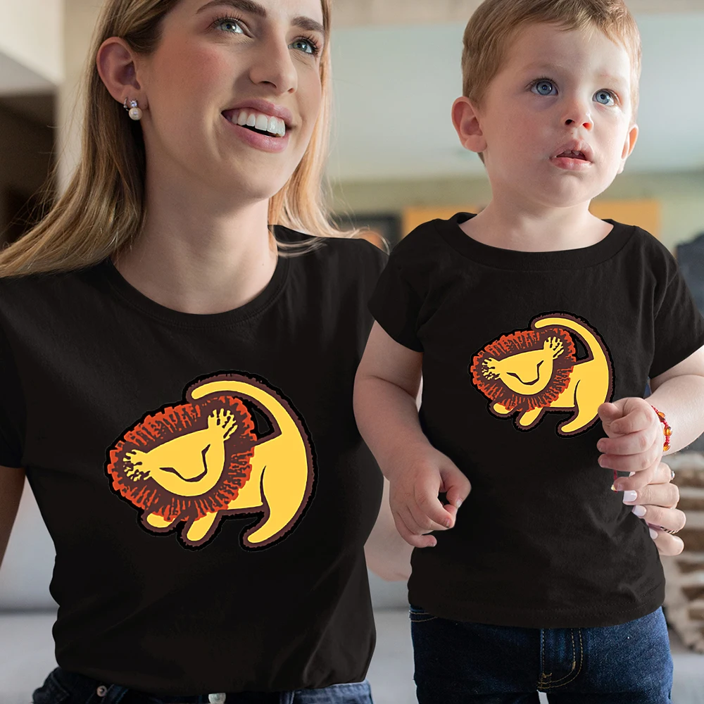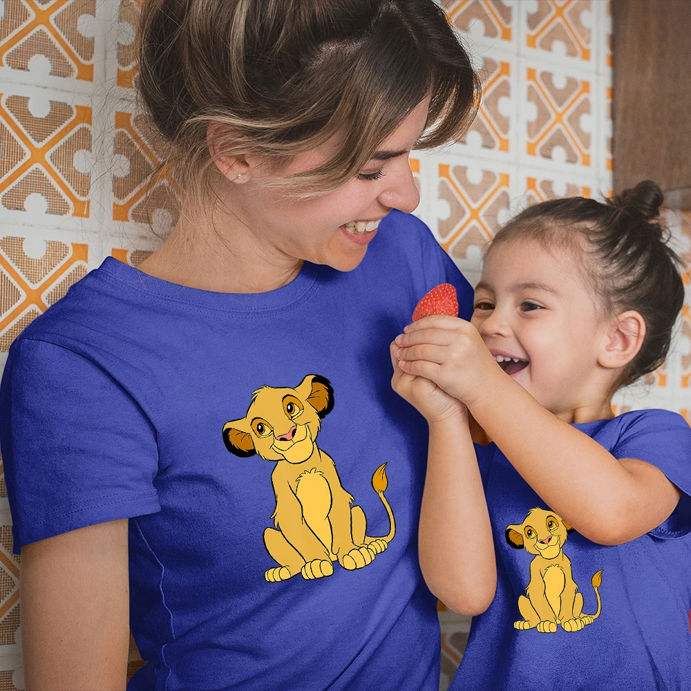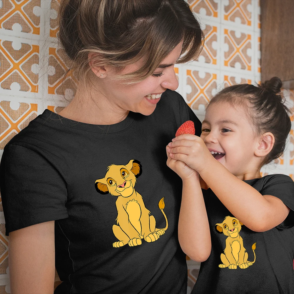 Всесезонная Одинаковая одежда для всей семьи Disney, модный топ с принтом Kawaii для улицы, Король Лев, Симба, новые летние товары