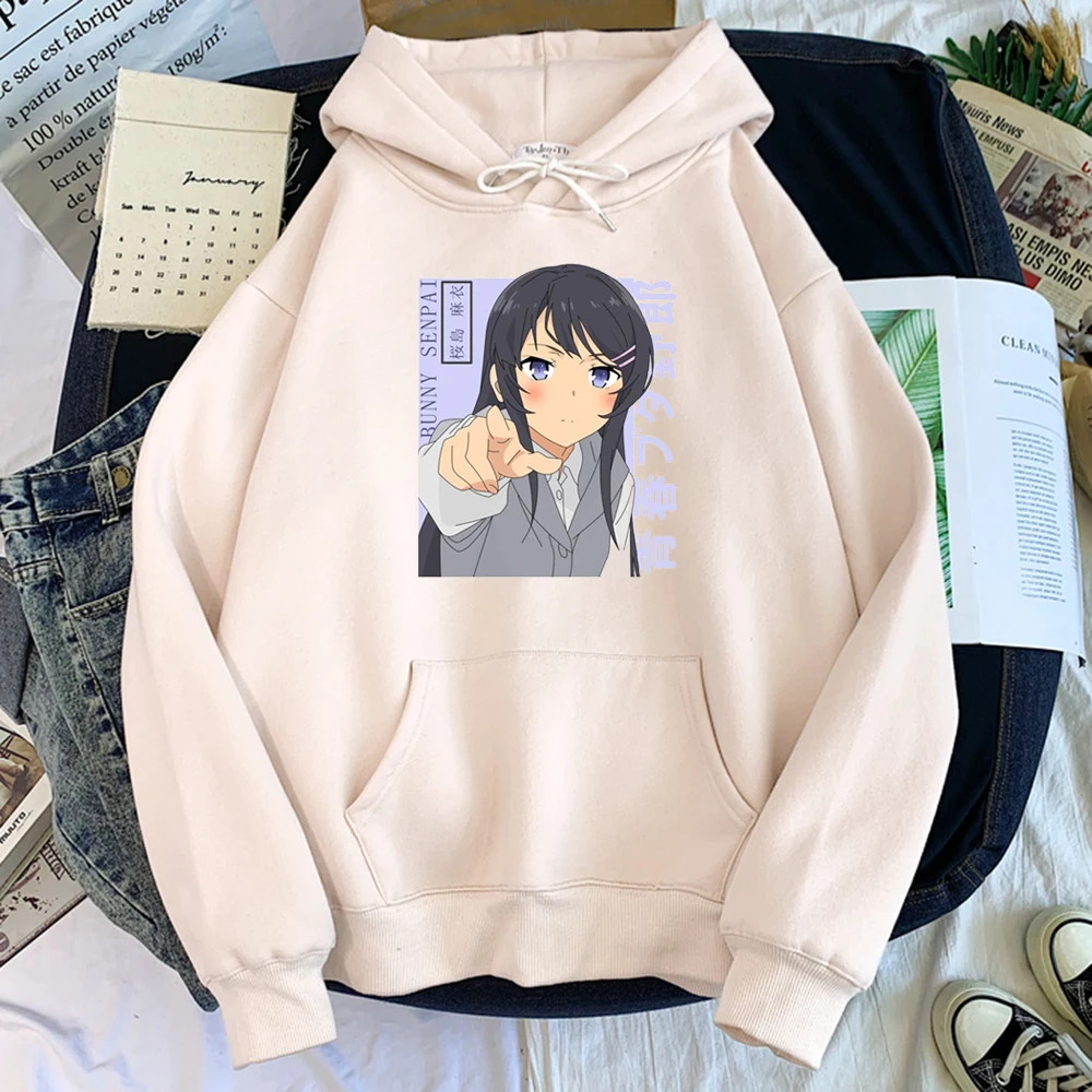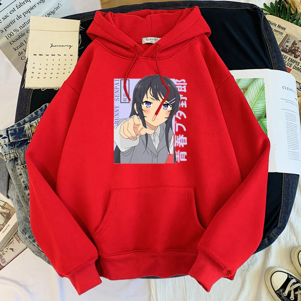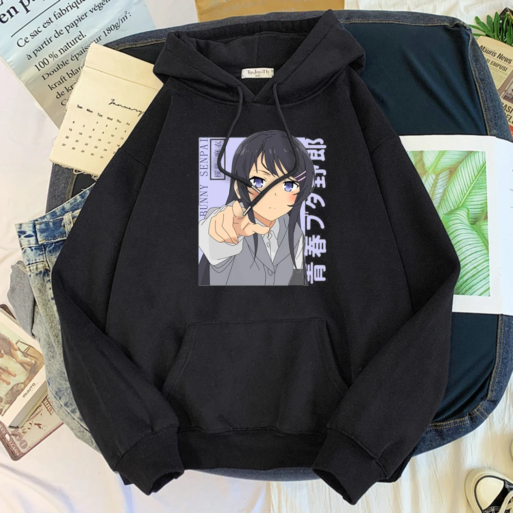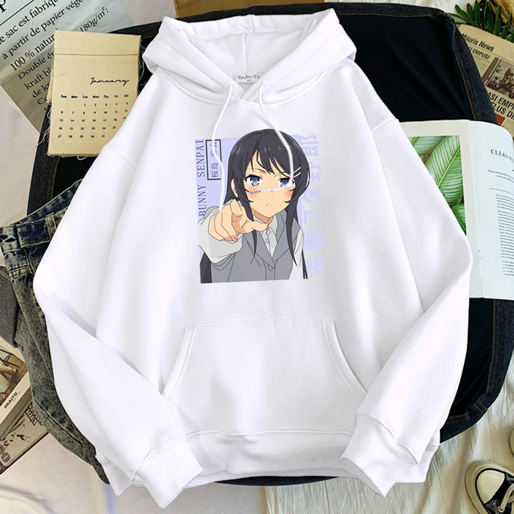 Мужская толстовка с капюшоном с персонажами аниме Сакурадзима Май, толстовка с принтом, мужской женский японский негабаритный Kawaii, уличный топ с длинными рукавами и капюшоном