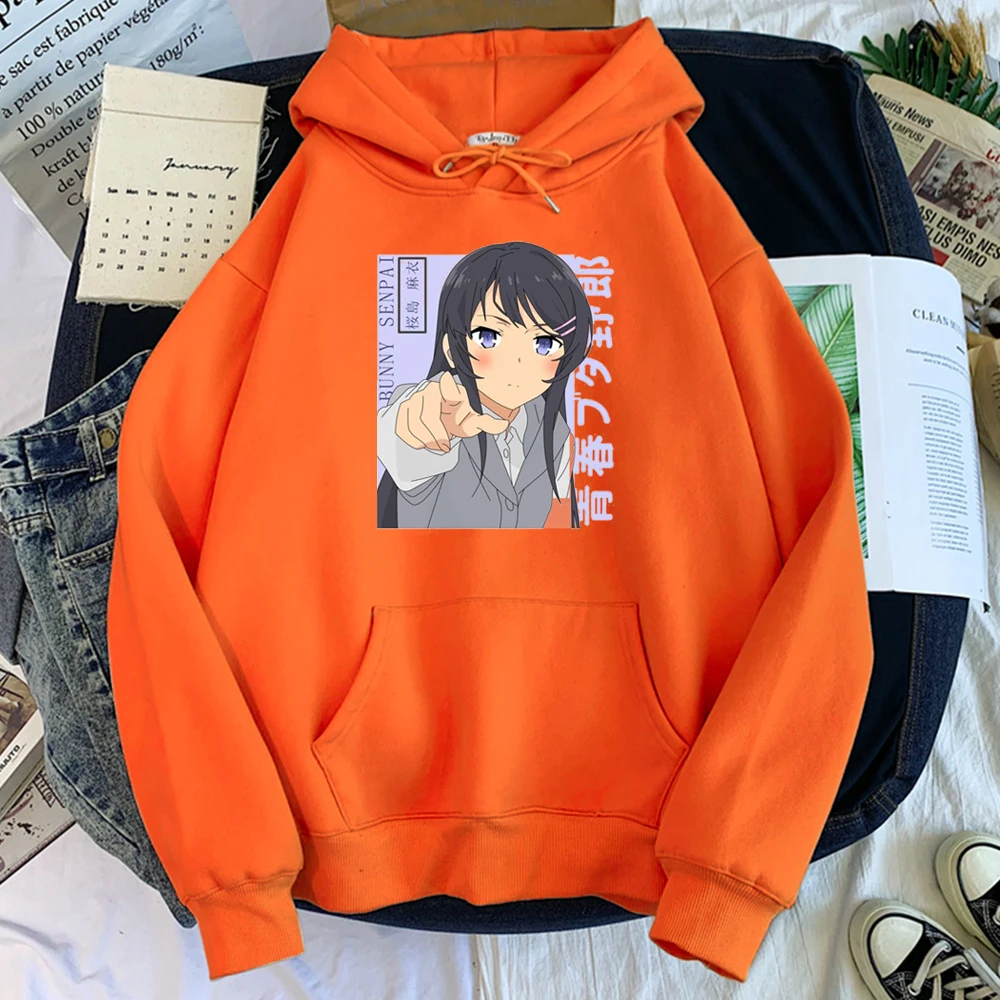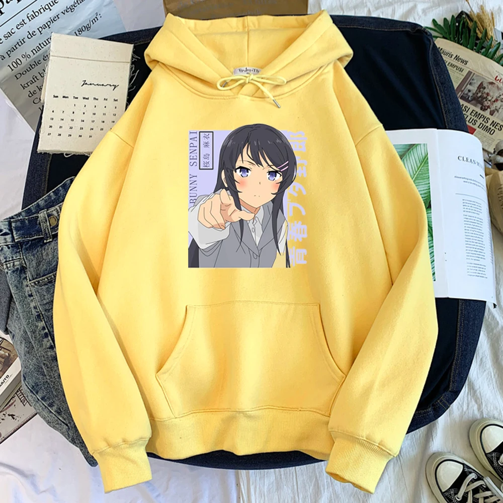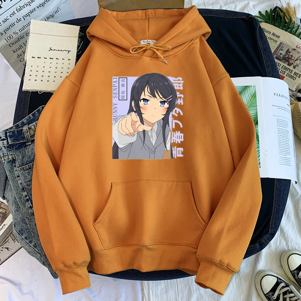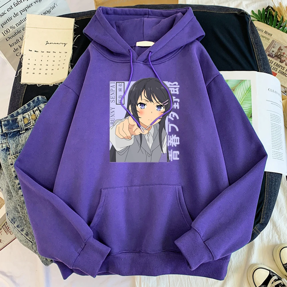 Мужская толстовка с капюшоном с персонажами аниме Сакурадзима Май, толстовка с принтом, мужской женский японский негабаритный Kawaii, уличный топ с длинными рукавами и капюшоном