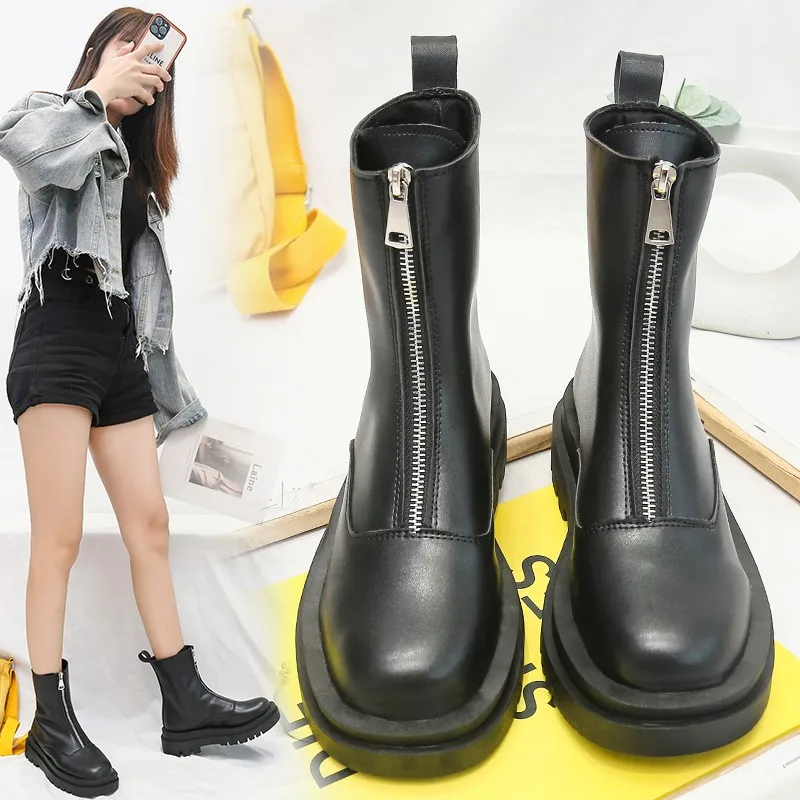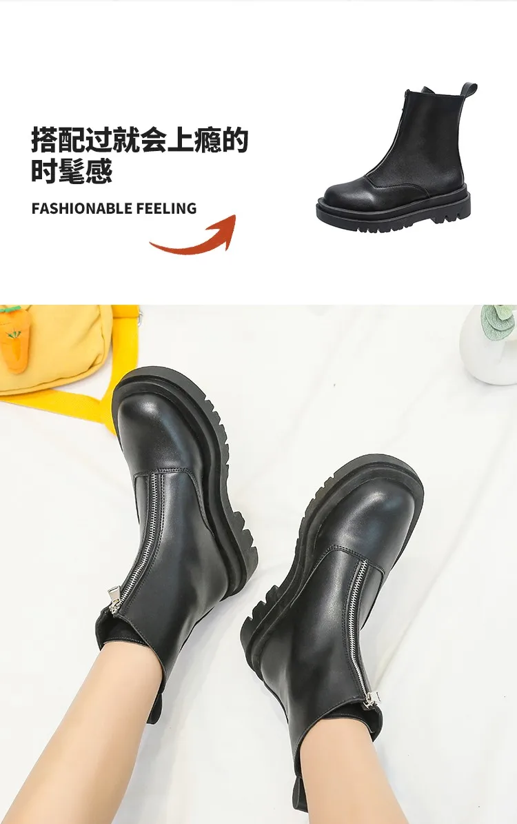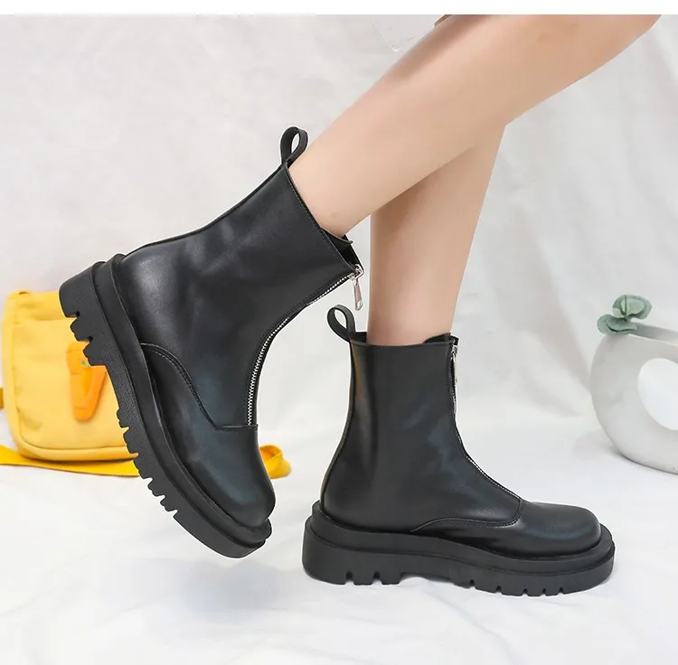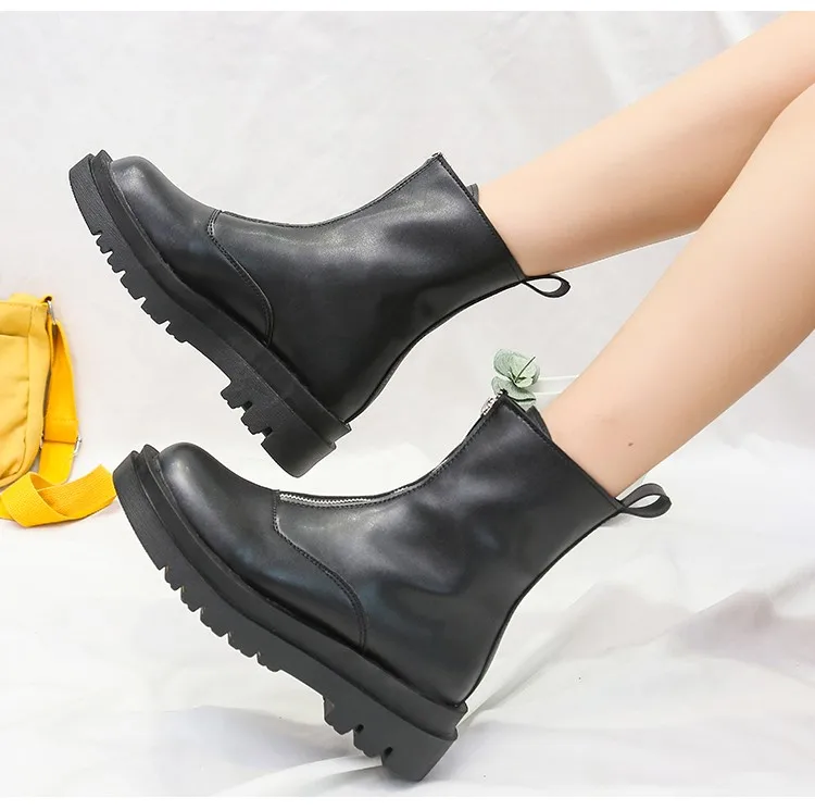 Женские однотонные сапоги, на молнии спереди, с подкладкой, весна-осень 2021