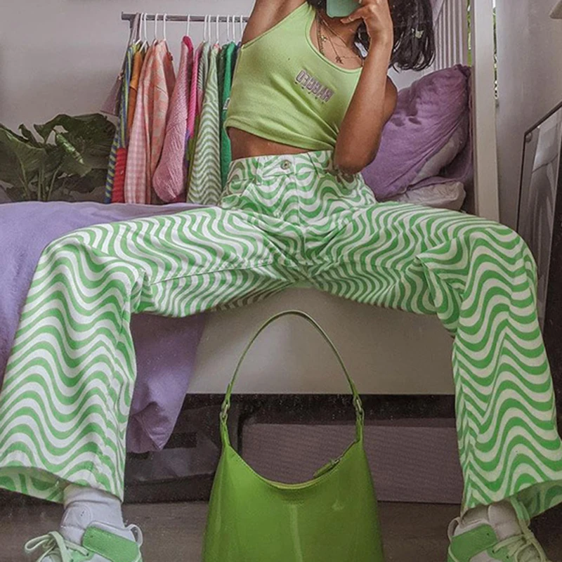 Женские брюки Y2k, винтажные уличные штаны для упражнений, Длинные весенне-осенние брюки, модные брюки с волнистым принтом в стиле Харадзюку