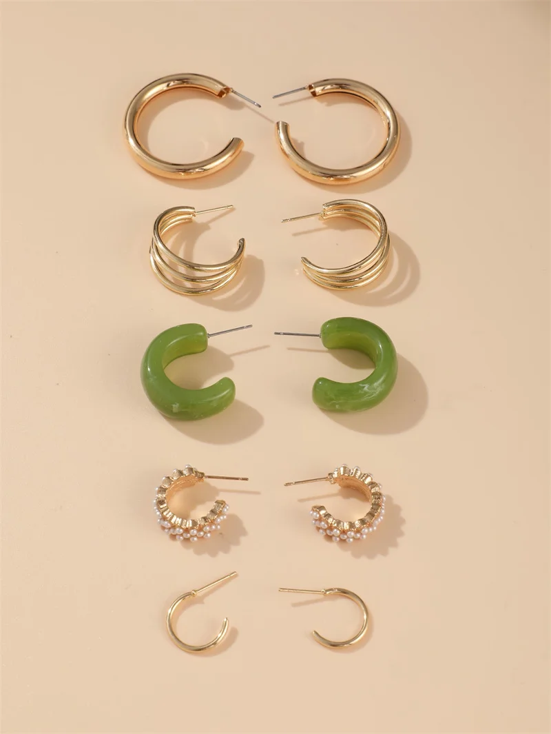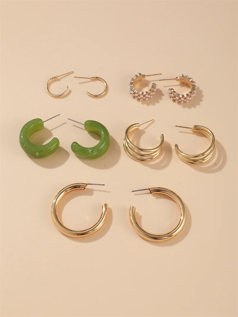 Набор разноцветных серег из смолы, серьги-кольца с жемчугом карамел...