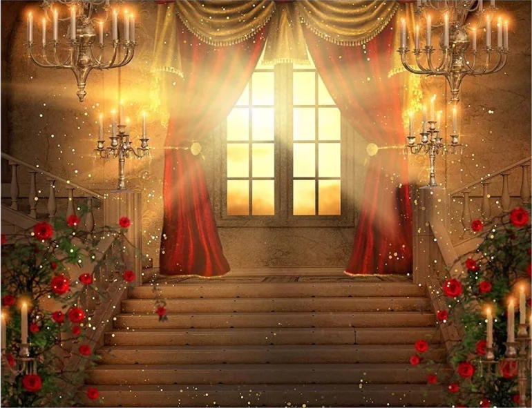 Фон для фотосъемки с изображением красавицы и чудовища в винтажном стиле, розового цветка, золотого замка, красавицы и чудовища, тематический фон для свадьбы