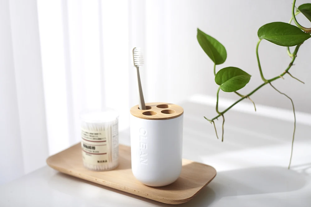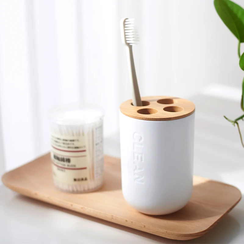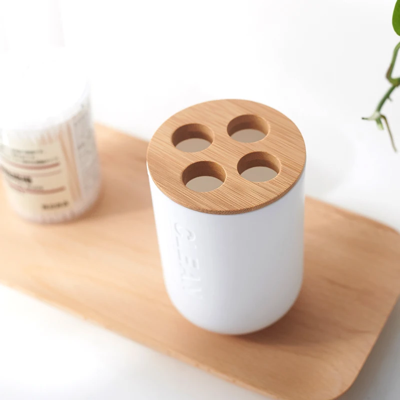 Многофункциональный держатель для зубных щеток из бамбука, пластиковая чашка для зубных щеток дюйма