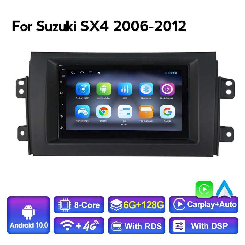 Автомагнитола 2 din, мультимедийный видеоплеер, GPS-навигатор, DVD, Android, 8 ядер, 6 + 128, для Suzuki SX4 2006, 2007, 2015, Fiat Sedici