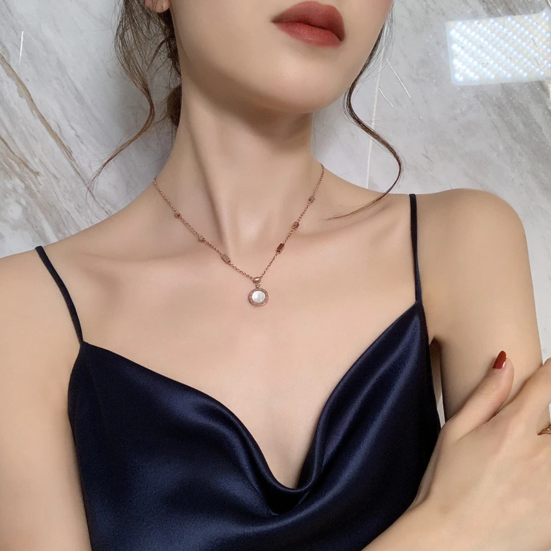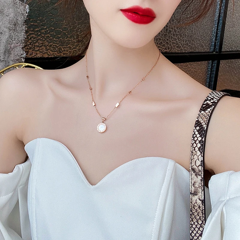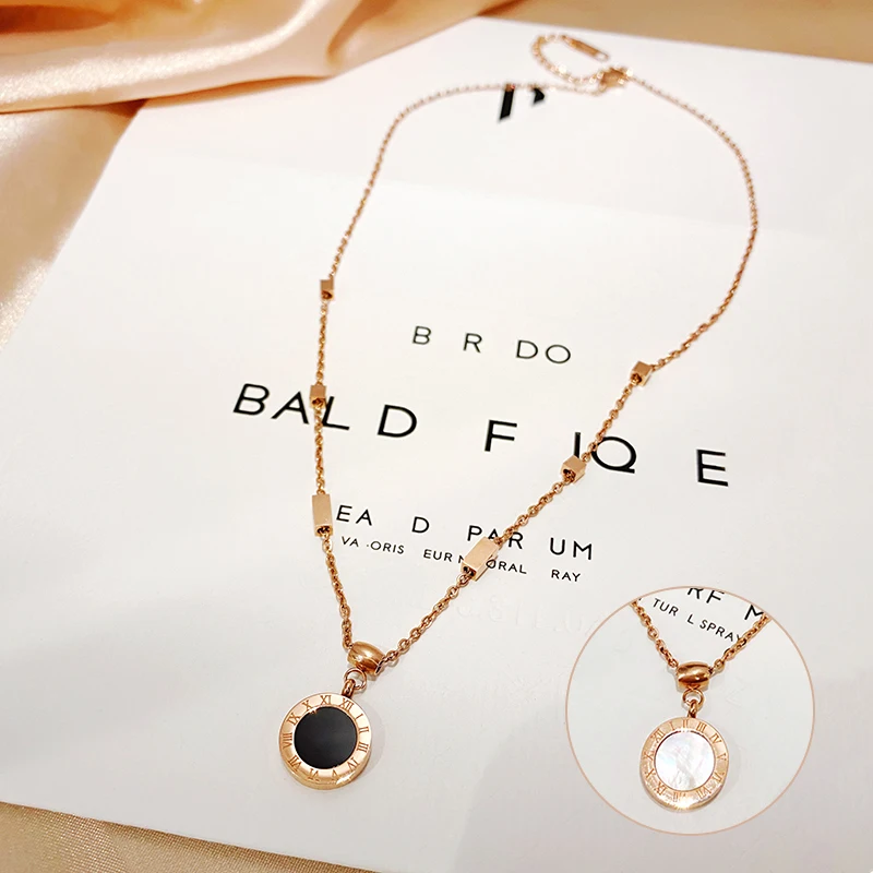 Классическое колье из титановой стали с римскими цифрами, черно-белое ожерелье с подвеской в виде диска, необычные женские цепочки до ключиц