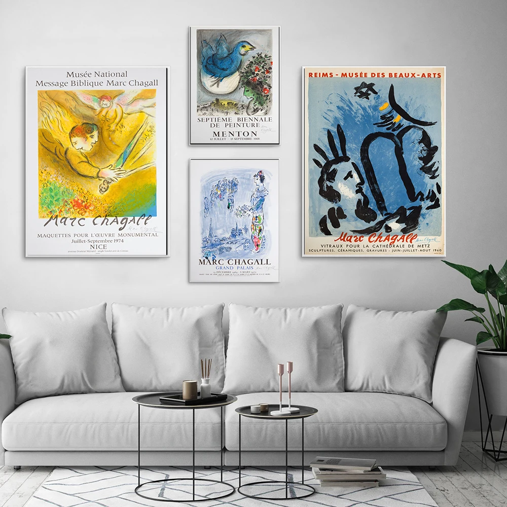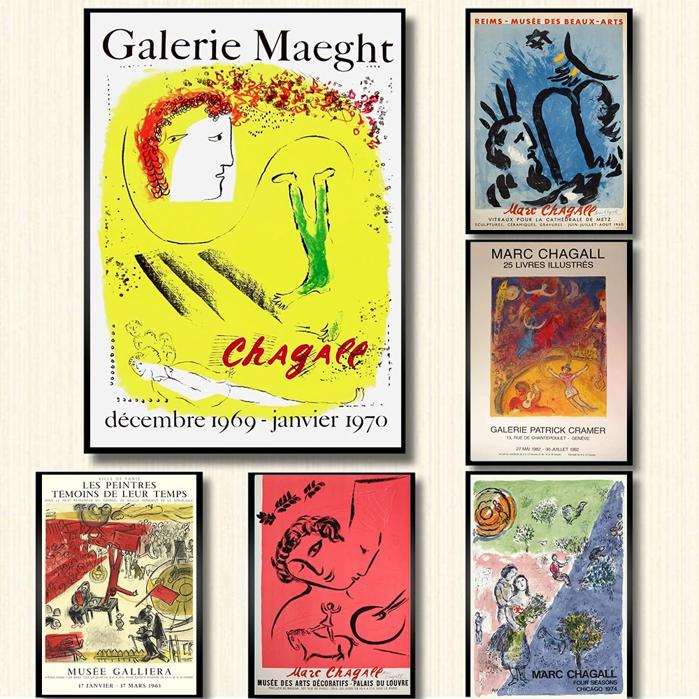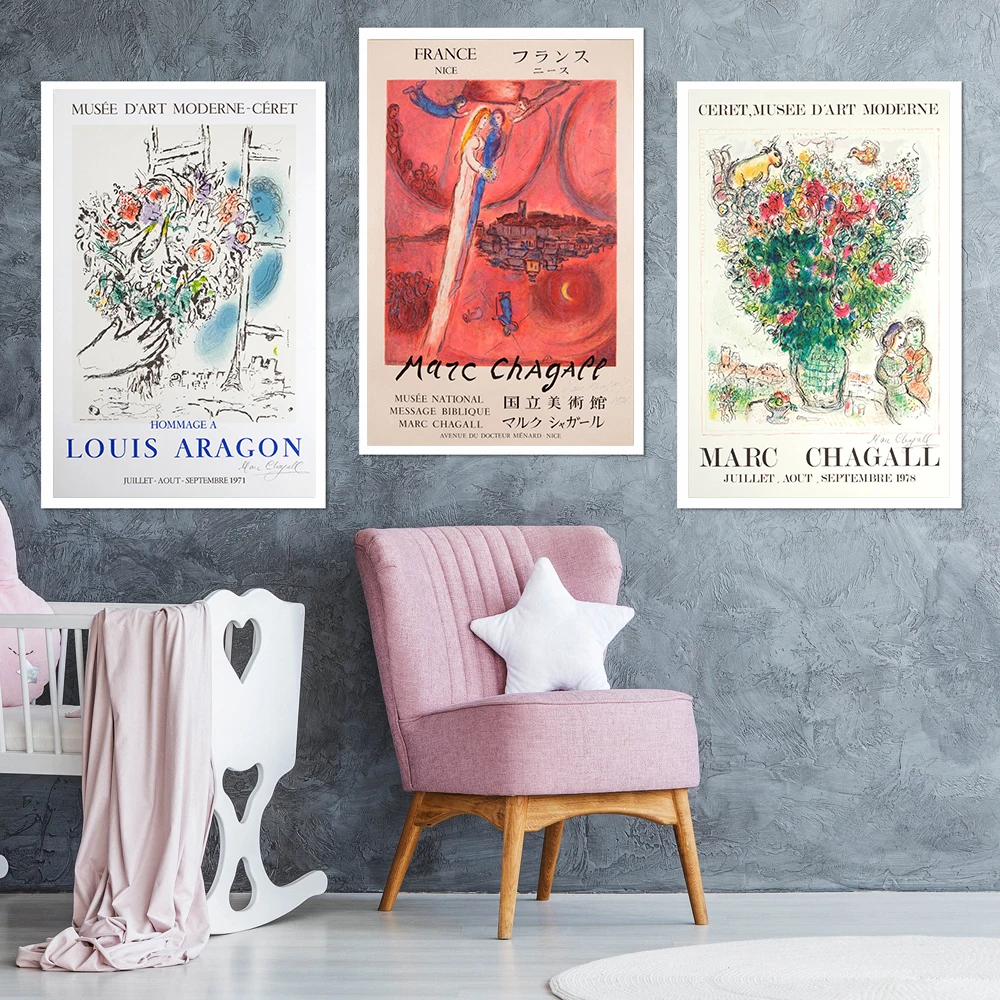 Винтажные постеры для выставки Марка Chagall, картины Four Seasons, цирк и Лувр, стена Арт Деко в трибуте Луису Арагону