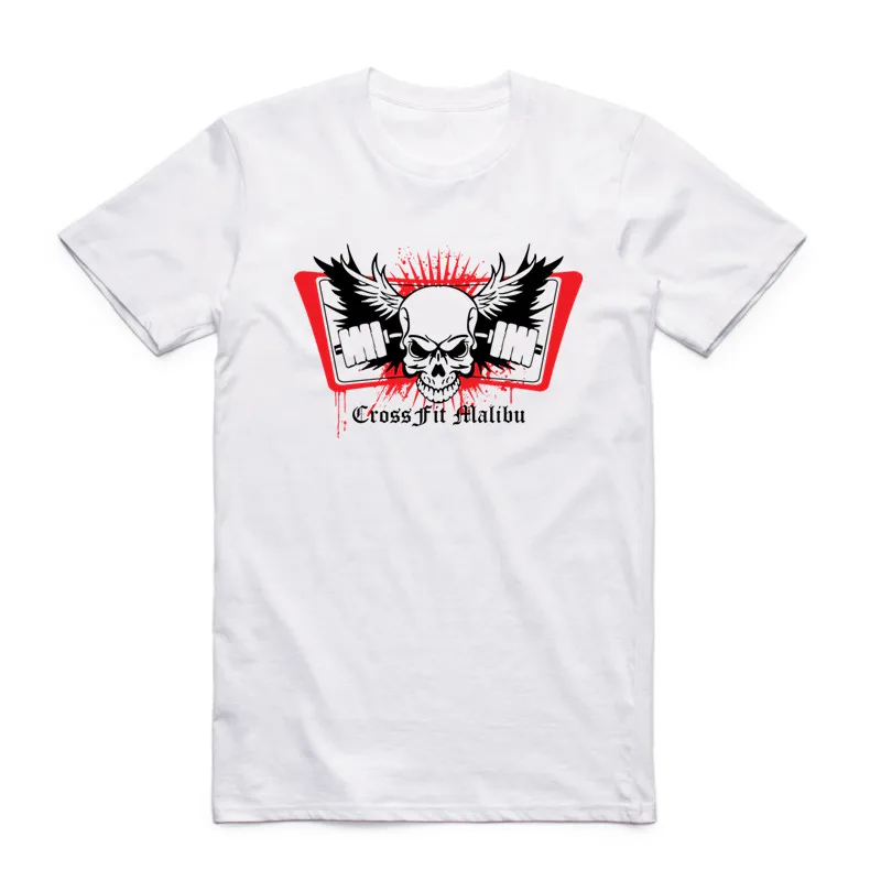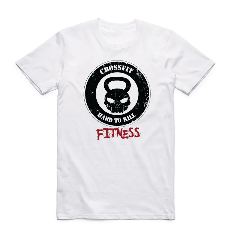 Футболка Мужскаяженская с принтом черепа, модная рубашка кроссфита с круглым вырезом и коротким рукавом, брендовая футболка белого цвета для фитнеса, на лето