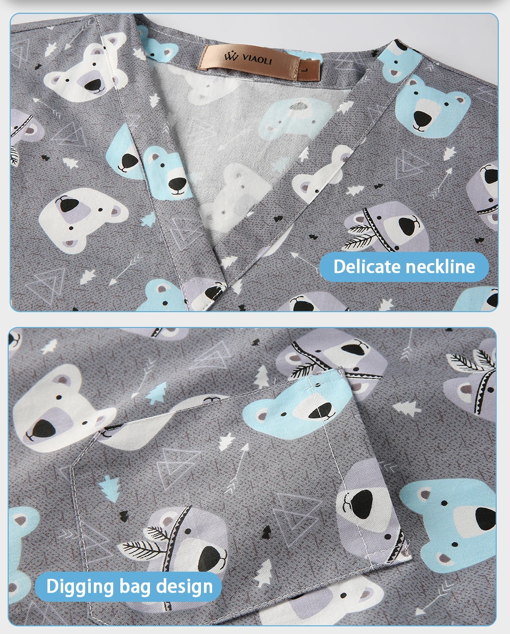 Scrubs tops Cute Cartoon printing Kindergarten teacher workwear pet...