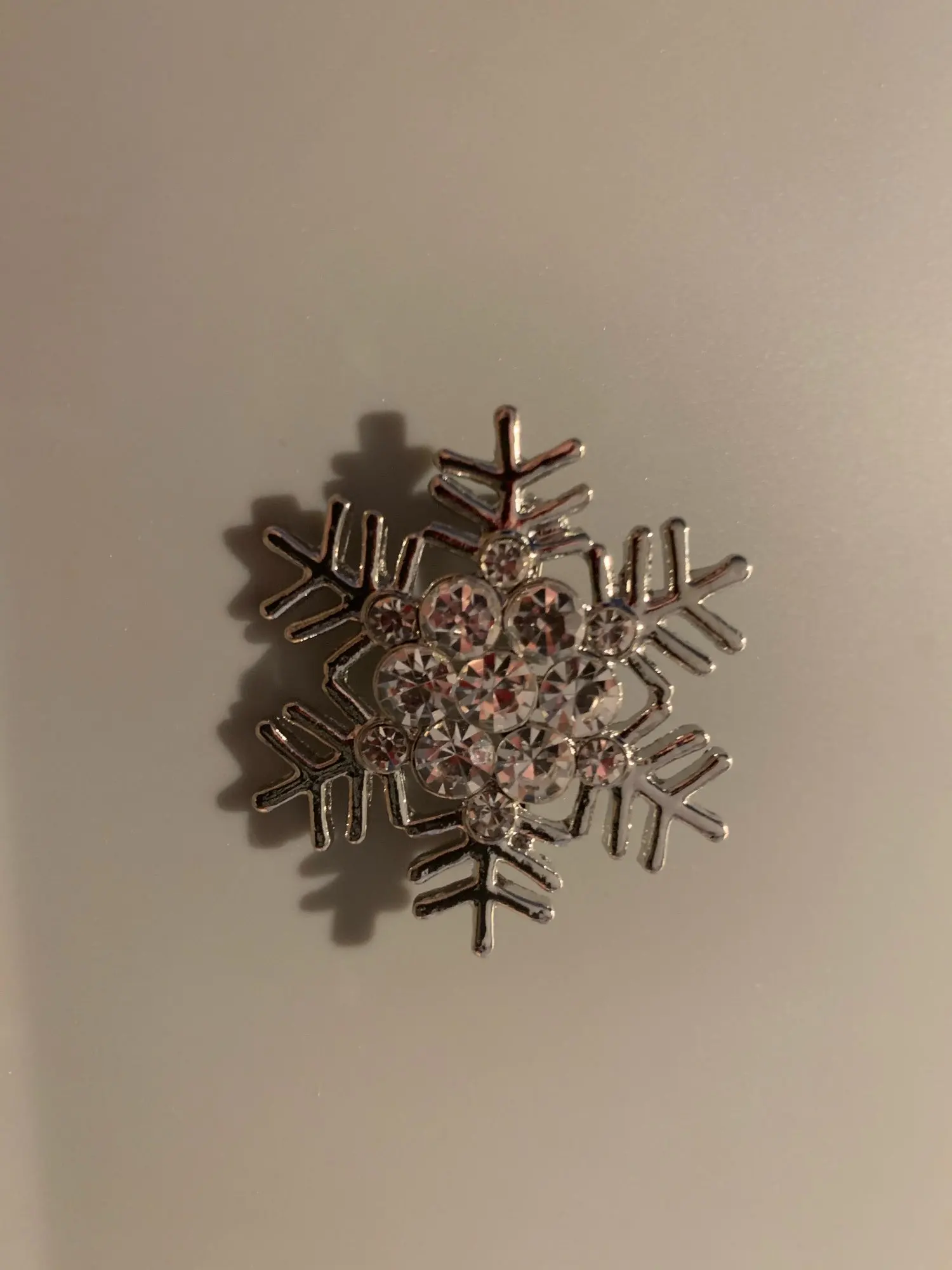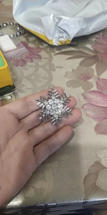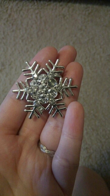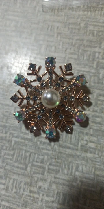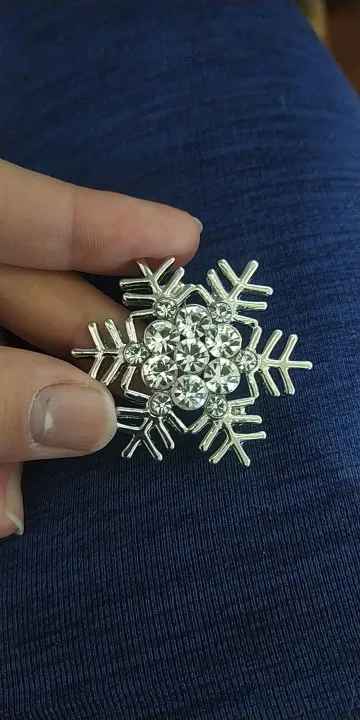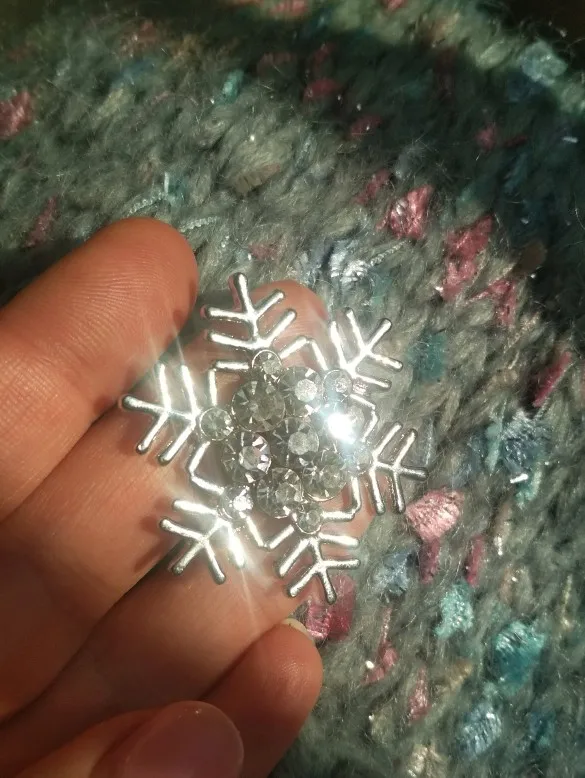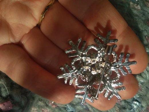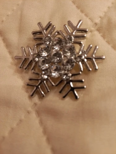 Снежинка аккуратно выполнена из белого металла с камушками в центре. Все камушки на месте, красиво блестят. Застежка удобная выглядит надежной, петельки для ношения на шее нет. Рассчитываю носить ее на пальто, опасаюсь, что белый металл может со временем потемнеть. Спасибо продавцу за быструю доставку. Рекомендую продавца.