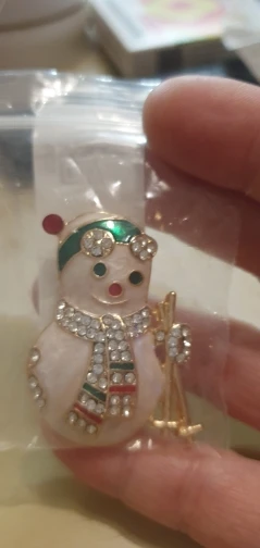 Брошь полностью соответствует фотографиям на сайте продавца. Выглядит очень мило и по новогоднему. Сделана очень аккуратно, все камушки на месте. Посылочка пришла значительно быстрее, чем было заявлено. Я очень довольно покупкой