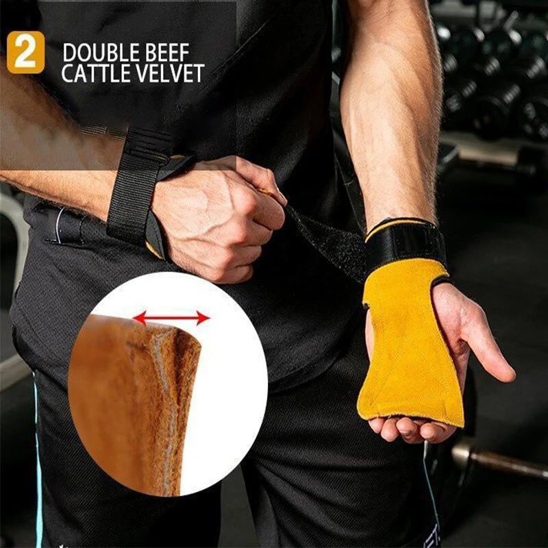 Захваты для тяжелой атлетики из воловьей кожи, перчатки для тренажерного зала и фитнеса, защитные наручники для тренировок, кроссфита, поддержки запястья во время тренировок и бодибилдинга