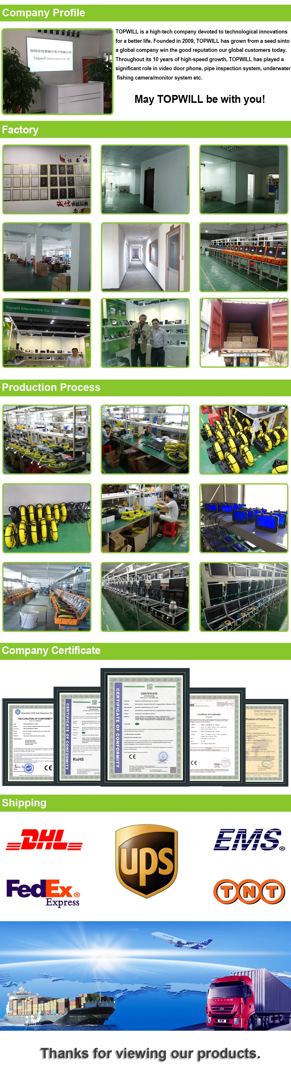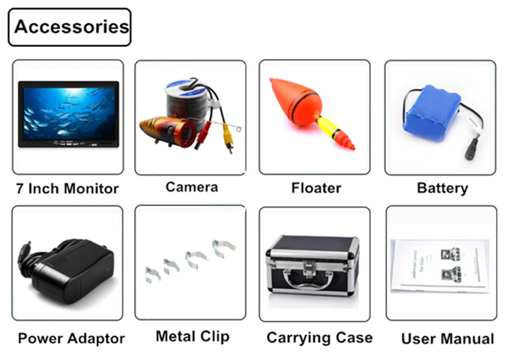 Этот продукт, который вы смотрите сейчас, является последней популярной, модной, красивой и удобной системой подводной рыбалки. Он не только имеет большой и цветной экран, но также имеет камеру высокой четкости, которая имеет HD 1000 телевизионных линий. Более того, есть 12 высокомощный белый светильник s для камеры светильник источник, а также эти 12 белый светильник s отделены от камеры, чтобы предотвратить попадание воды входит в комплект поставки.