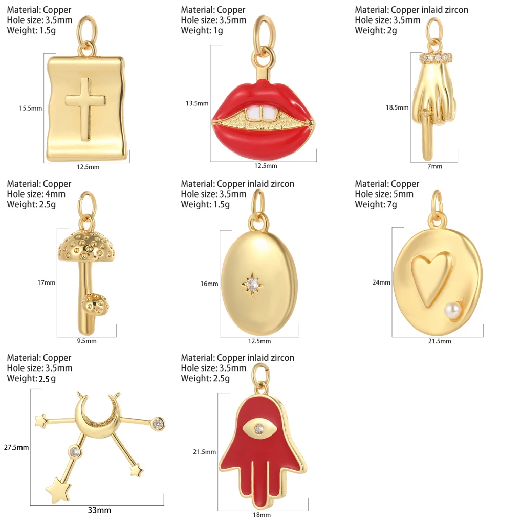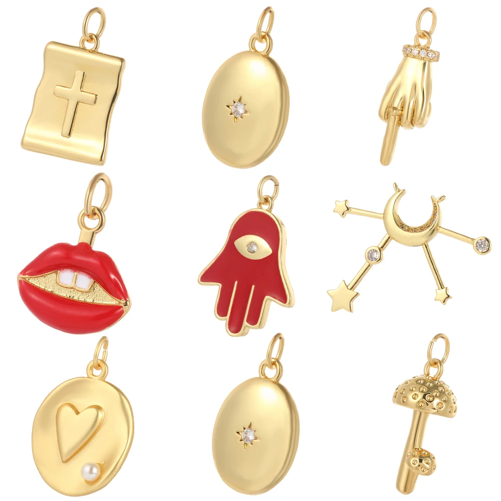 Кулоны для изготовления украшений сделай сам, подвески для губ, сердца, сглаза, голубого глаза, ожерелье, браслет, серьги, золотые аксессуары из меди и фианита